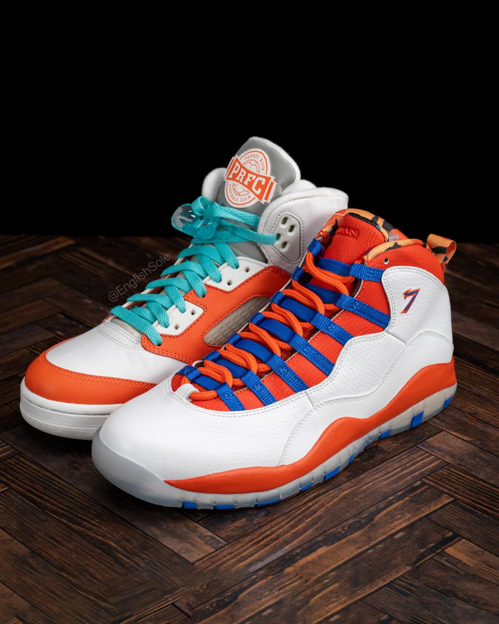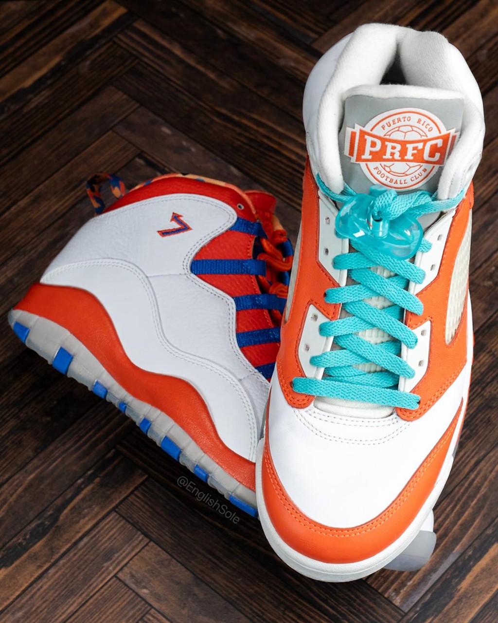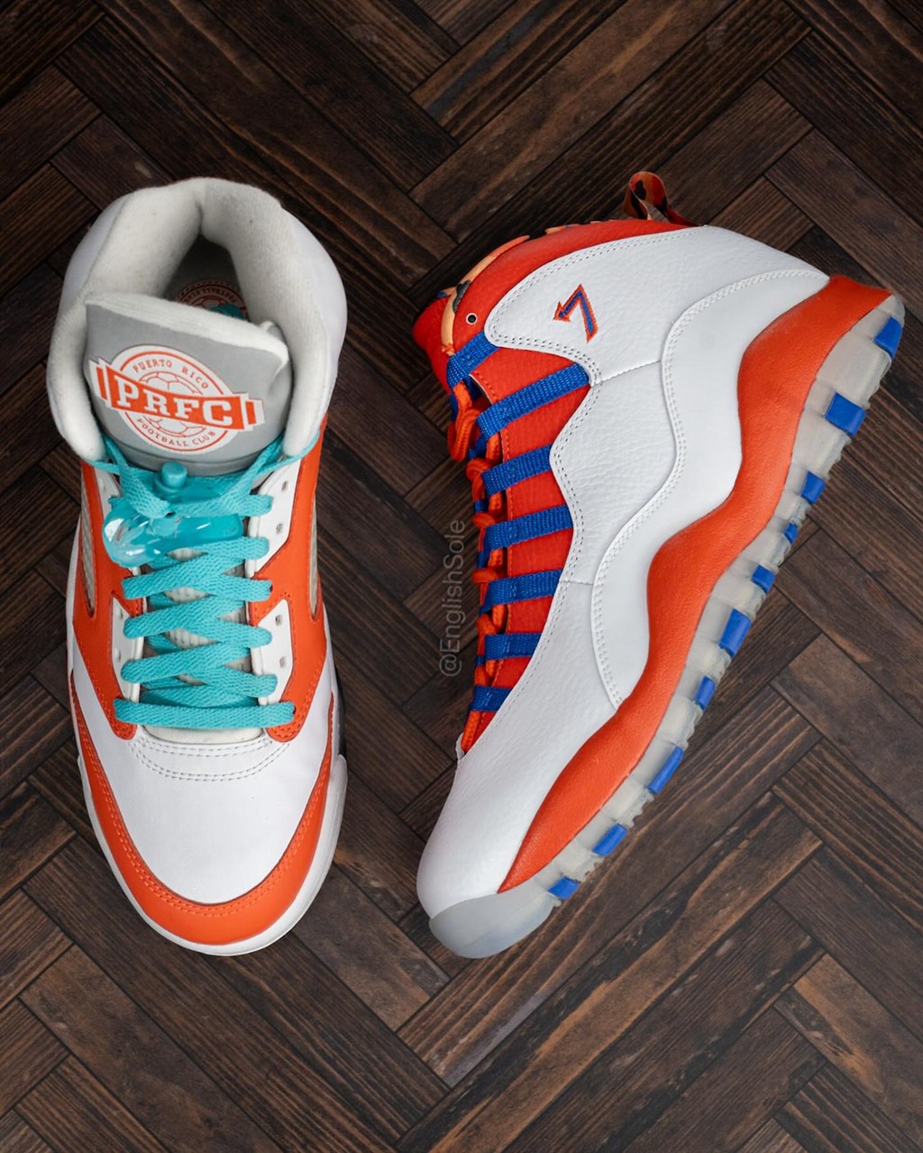 总共包含两双,以上是甜瓜纽约配色的 Air Jordan 10,一双则是波多黎各足球俱乐部的 Air Jordan 5。