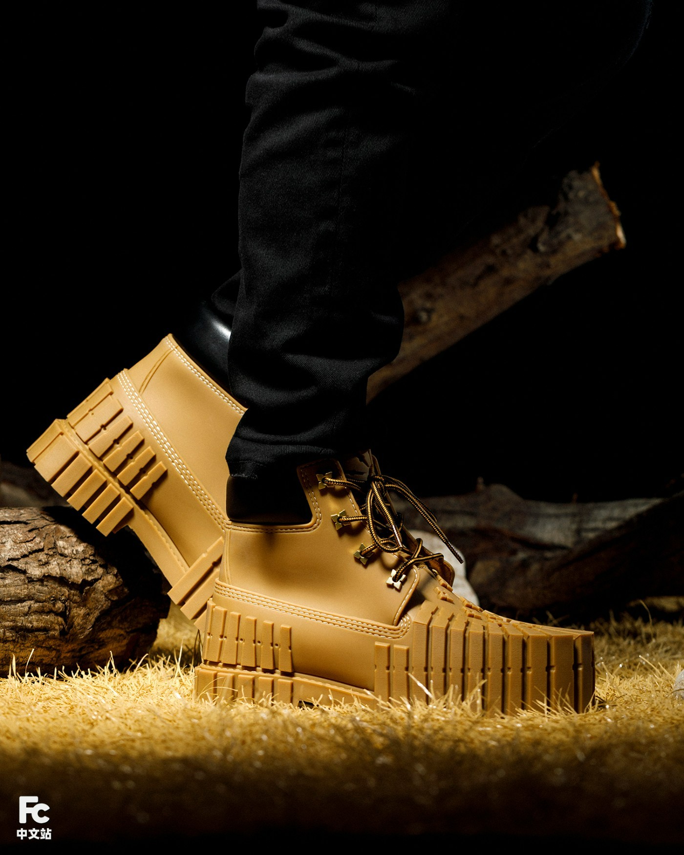 与之前的黄色高帮靴对比来看,除了配色上的区别,最大的变化就是附带一个全新配件。