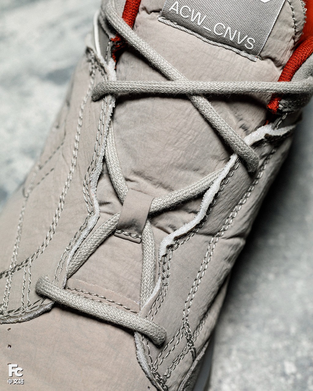 整双鞋以冷峻的灰色呈现,极具未来主义风格,正如同 A-COLD-WALL* 的品牌名一般:冷墙。