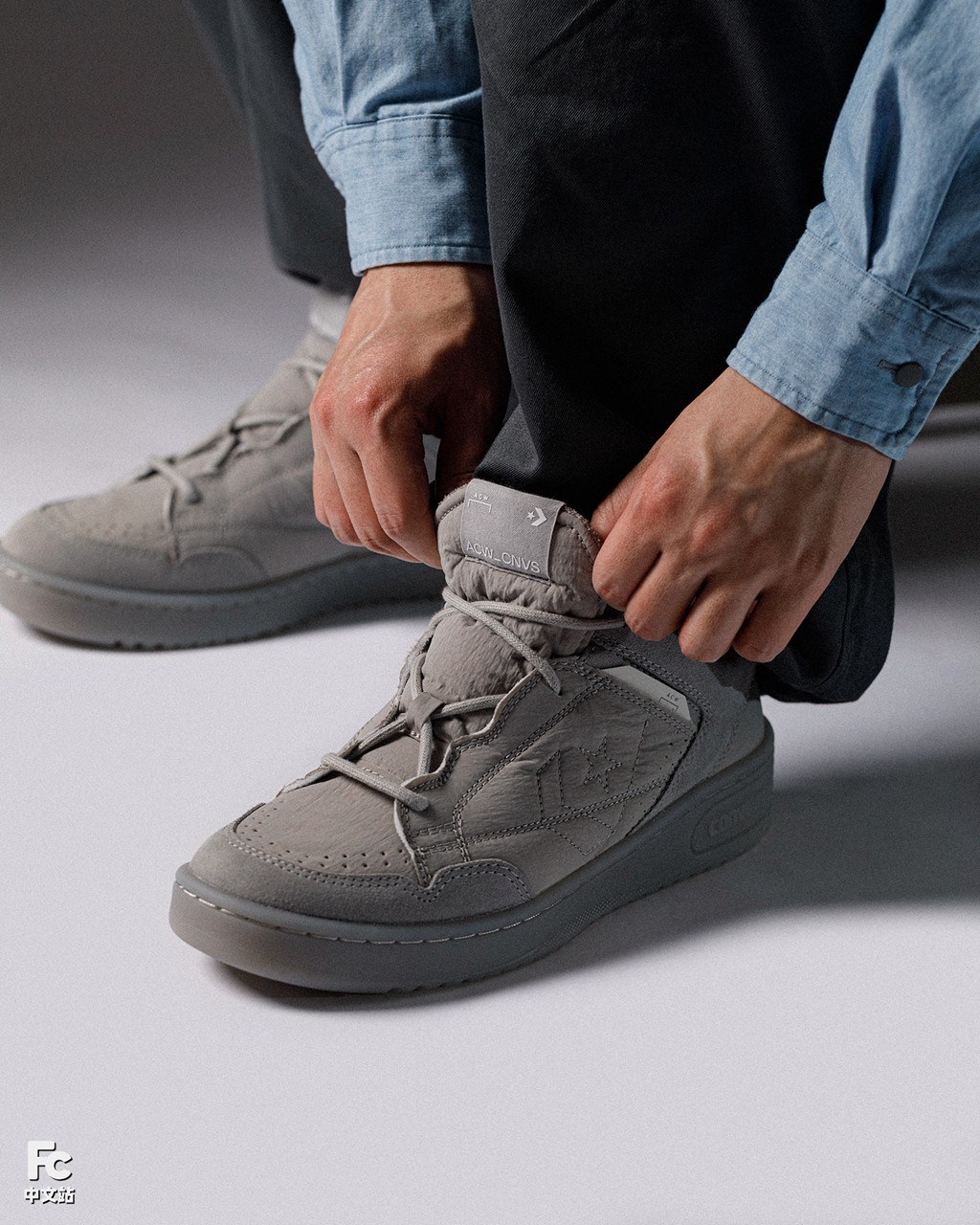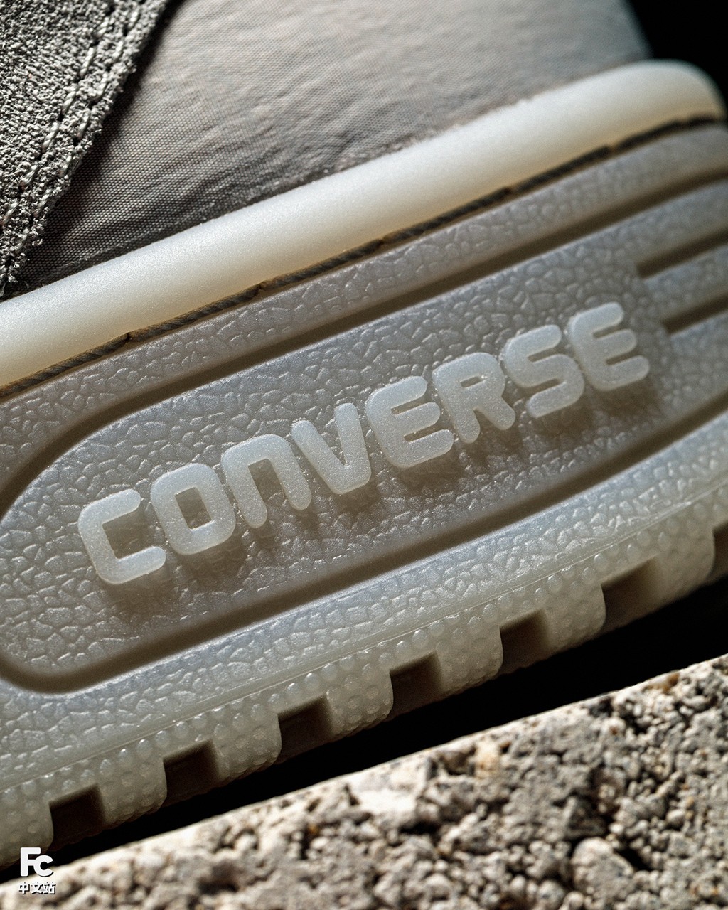 Converse 经典的星箭 Logo 也被淡化处理,让鞋面一体性更强。