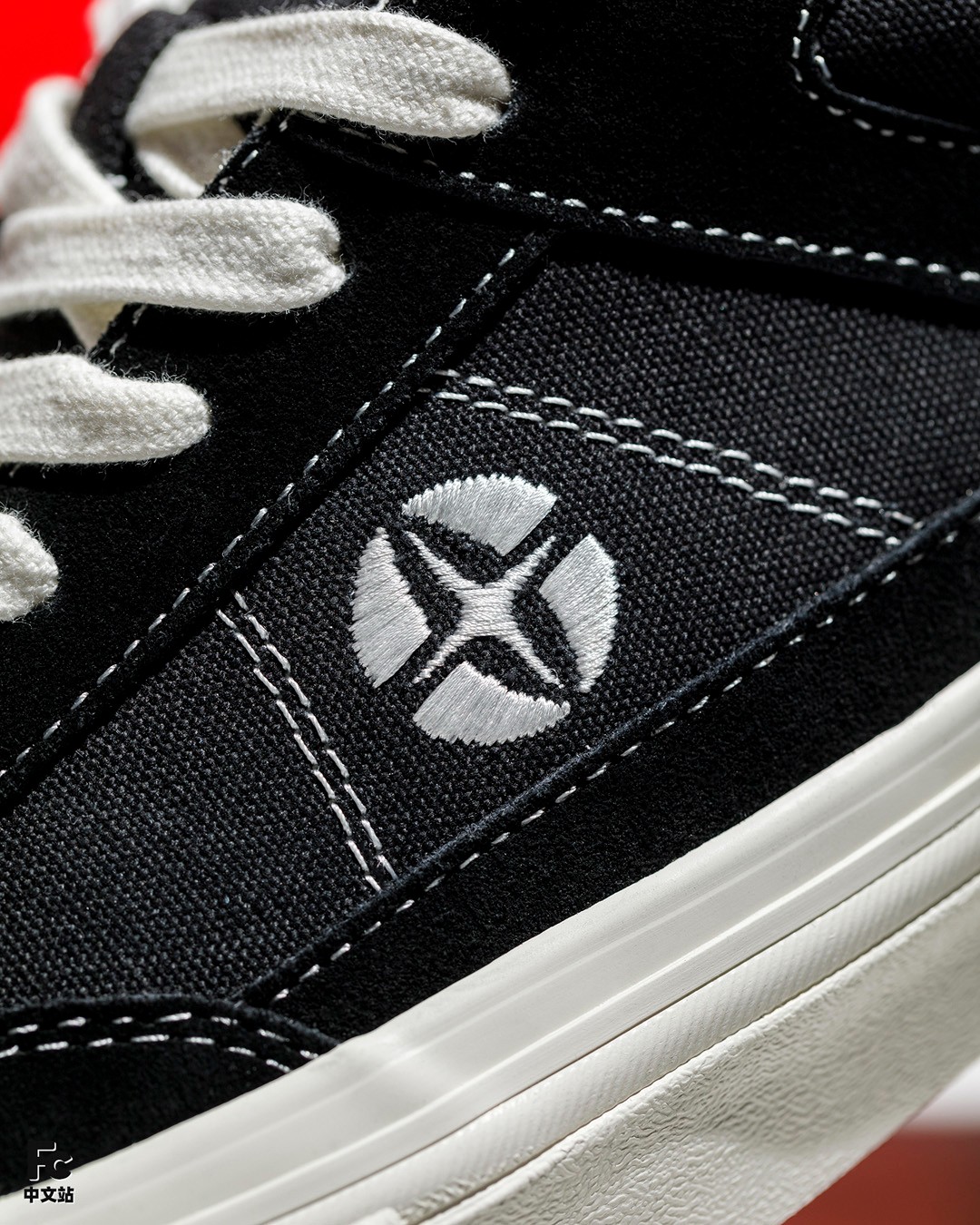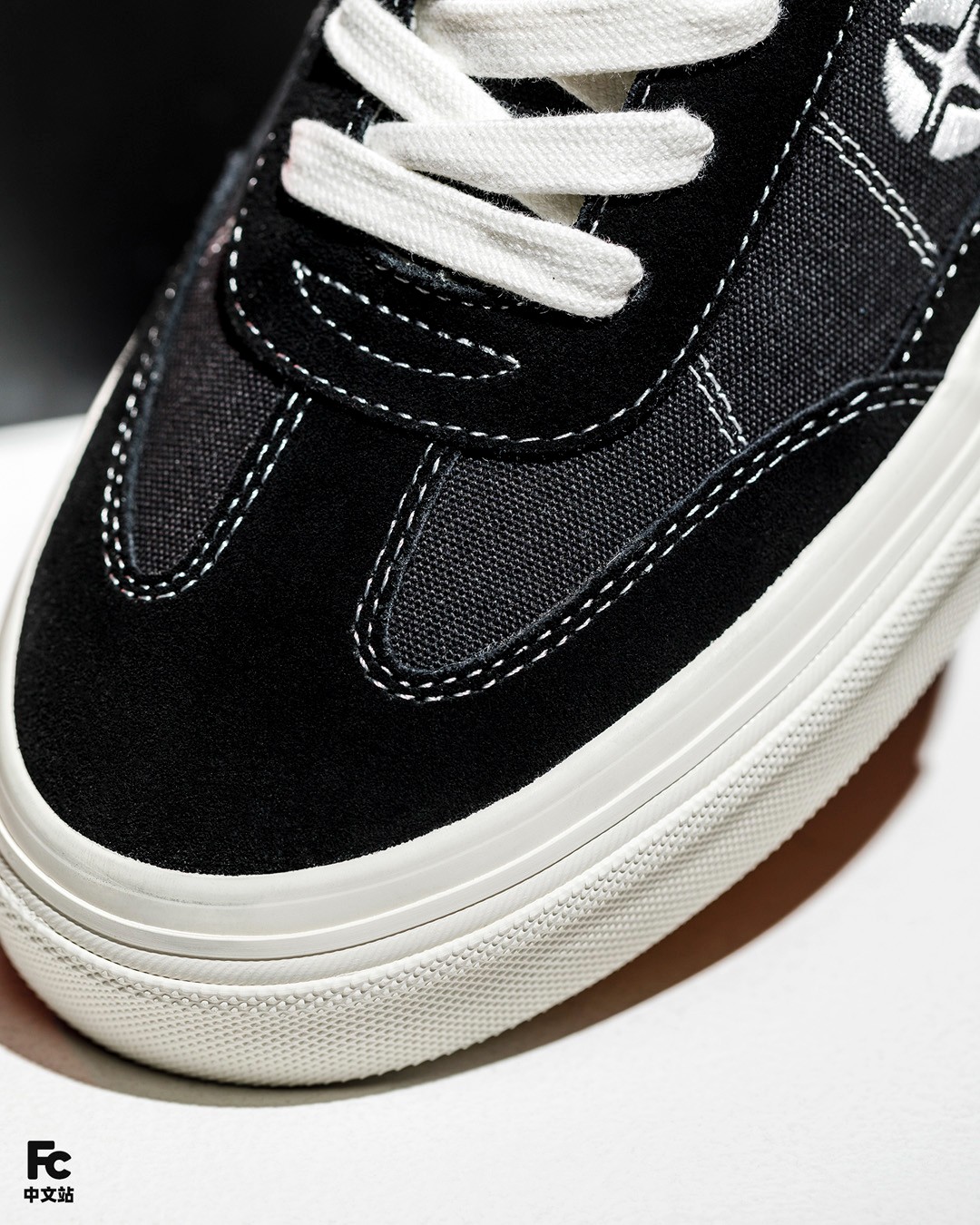标志性的「双 V 字样四芒星 EYE-V」被安排到了鞋侧 C 位,这个标识在当年也是不少街头板仔和潮流人士的精神图腾,放到今天看依旧充满着设计感。