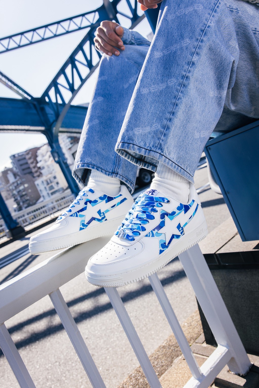 保留整体 BAPE STA™经典轮廓同时,在鞋身两侧 STA 徽标周围加入标志性的 ABC Camo 图案,形成类似「镂空」的独特视觉效果。