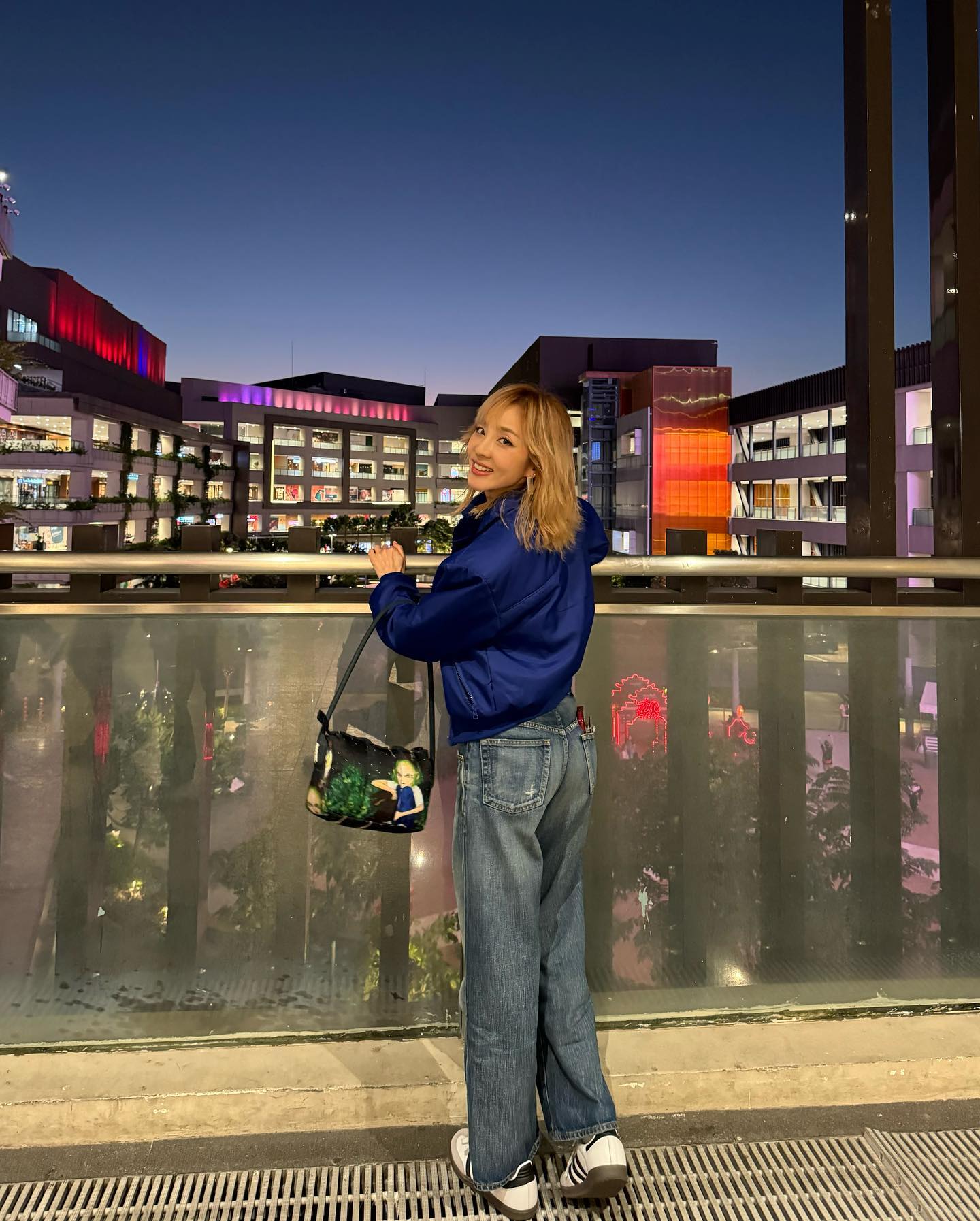 另一套造型同样是「下半身消失穿搭」,搭配了双女码市价两千的 Sporty & Rich x adidas Originals Samba。