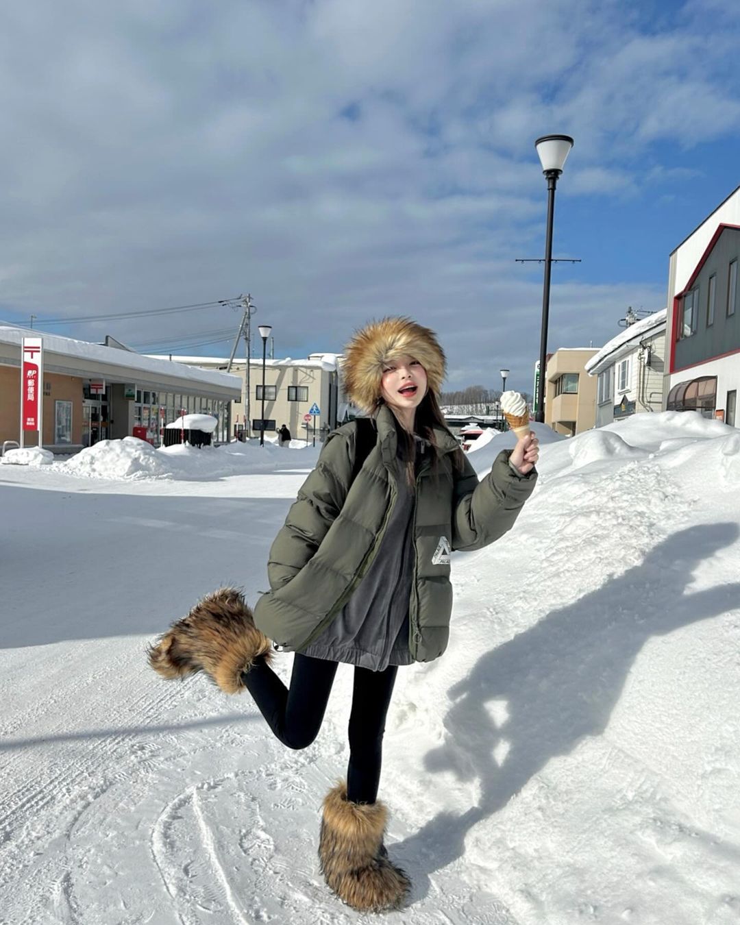 近期「微笑女神」Taeri 姜泰莉的穿搭颇为个性,像是这双皮草风格的雪地靴,外加同风格的帽子,主打一个上下呼应。