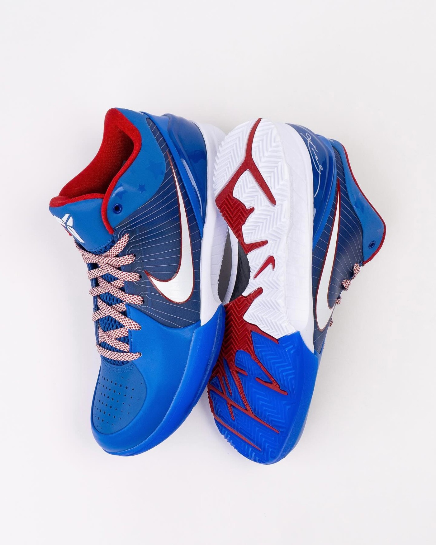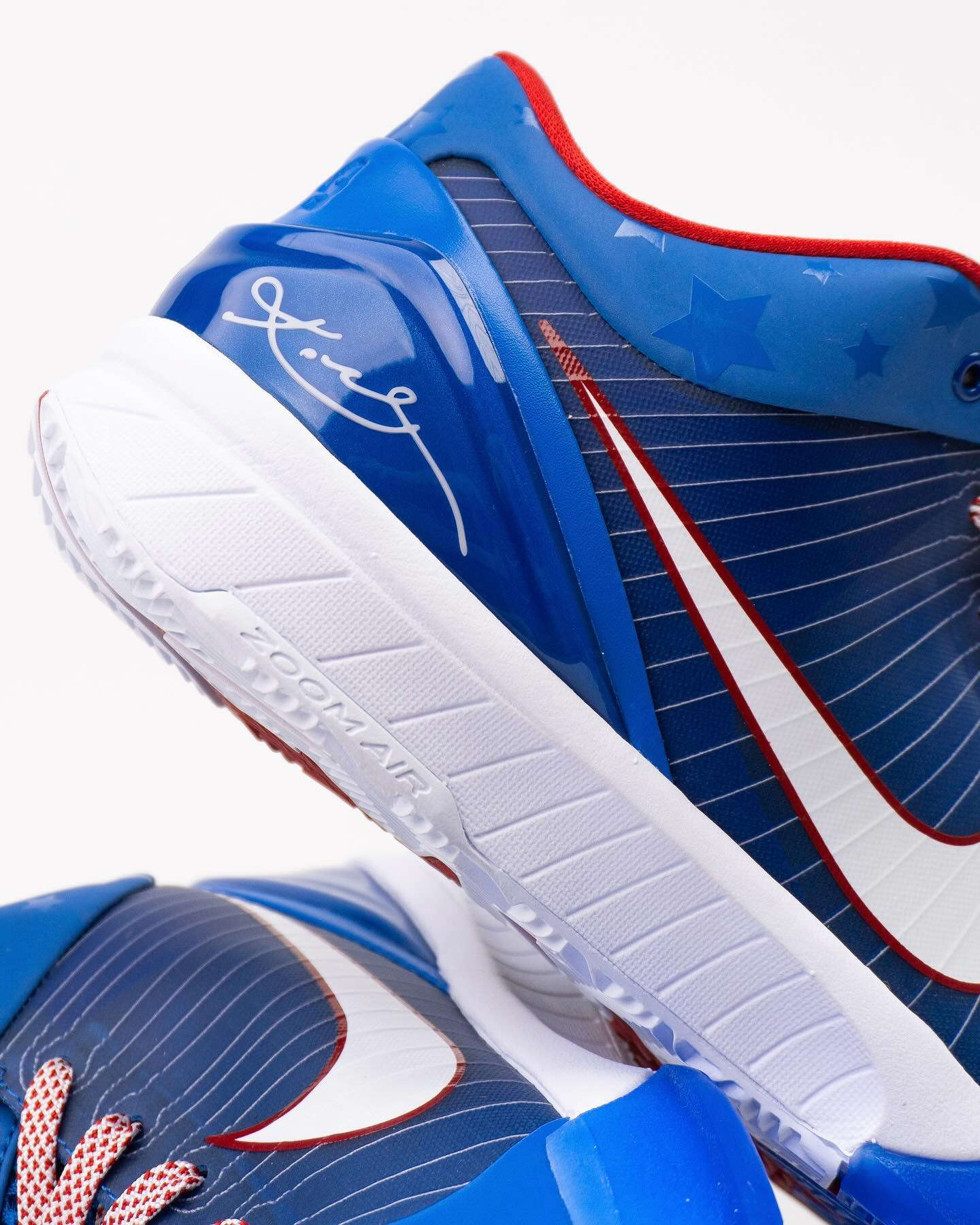 这款配色完美还原了 2009 年的装扮,蓝白红的装扮也颇有 76 人的气质,鞋垫上呈现了科比生日「8-23-78」。