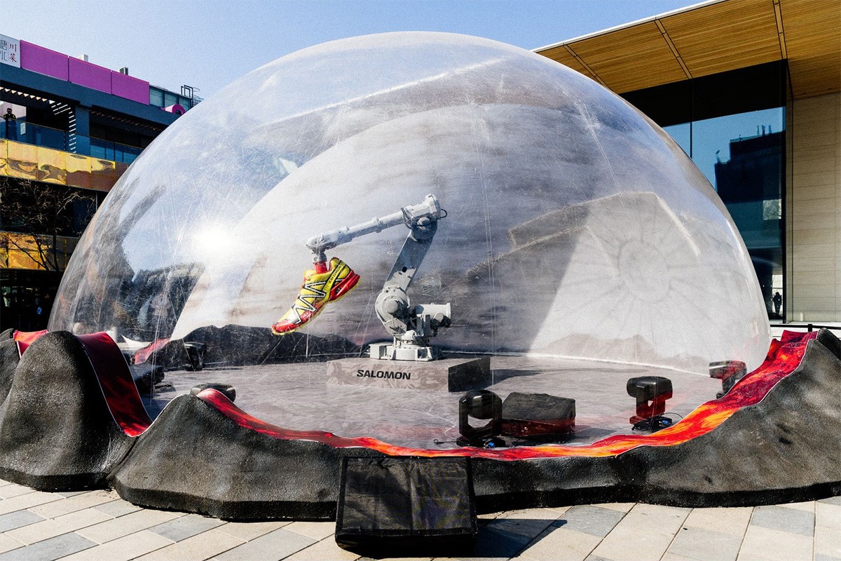 “秀演空间” 的艺术装置与品牌空间相互辉映,由瑞典先锋艺术团体 Encor studio 打造的野生机械臂,结合 Speedcross 3 鞋模展现极端与对抗的前卫诠释。