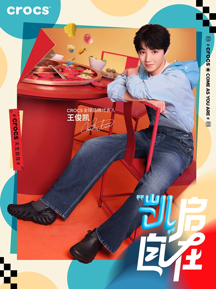 目前,王俊凯代言的 Crocs 系列鞋款已在全渠道上架,其中蜗轮闪耀克骆格则在线上登场。
