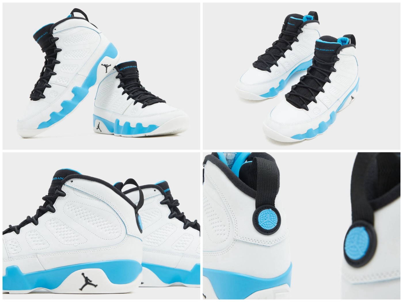 上周末 Air Jordan 9 “Powder Blue” 率先上架,大面积白色皮革包裹,搭配中底一抹蓝色,颜值相当清爽。
