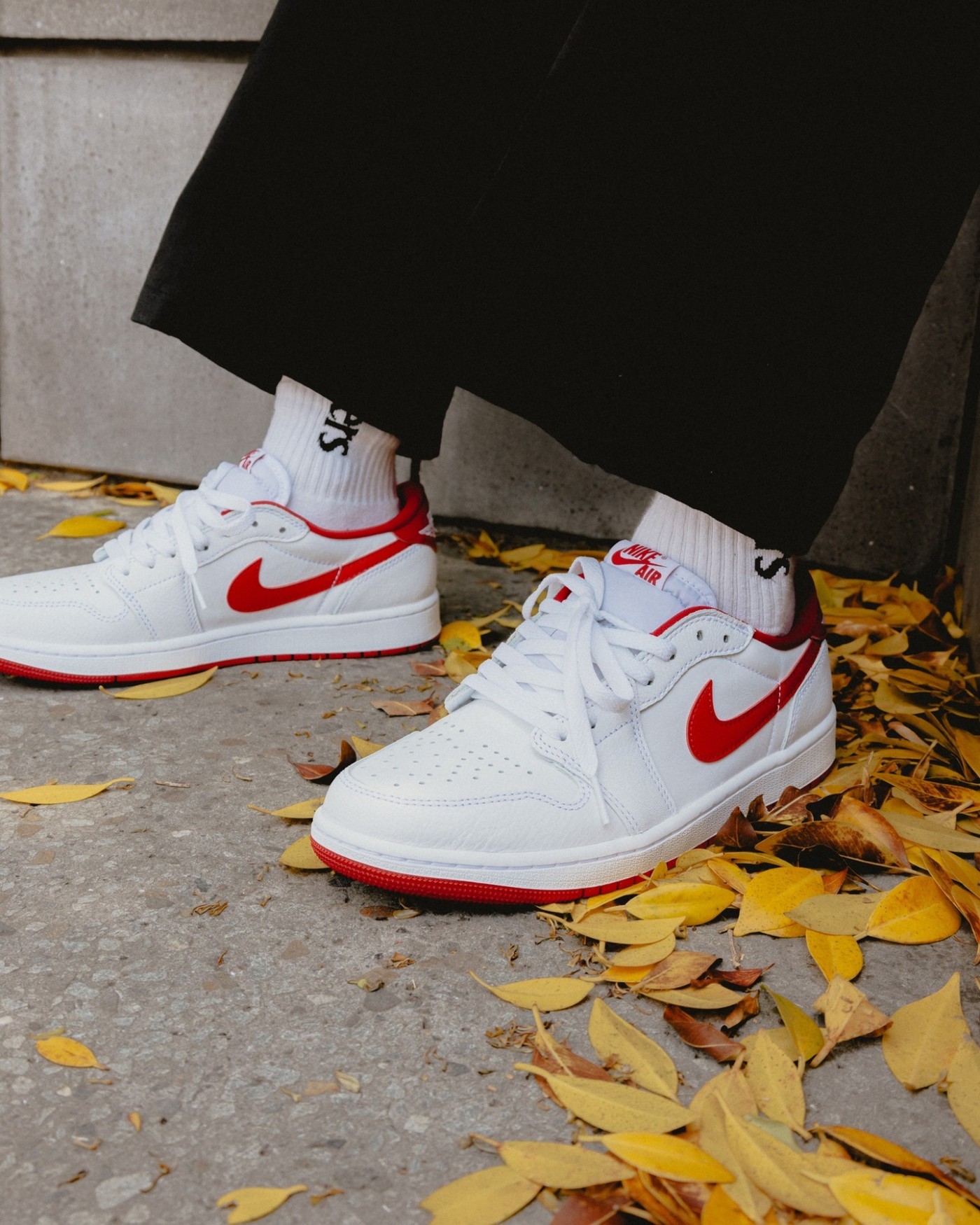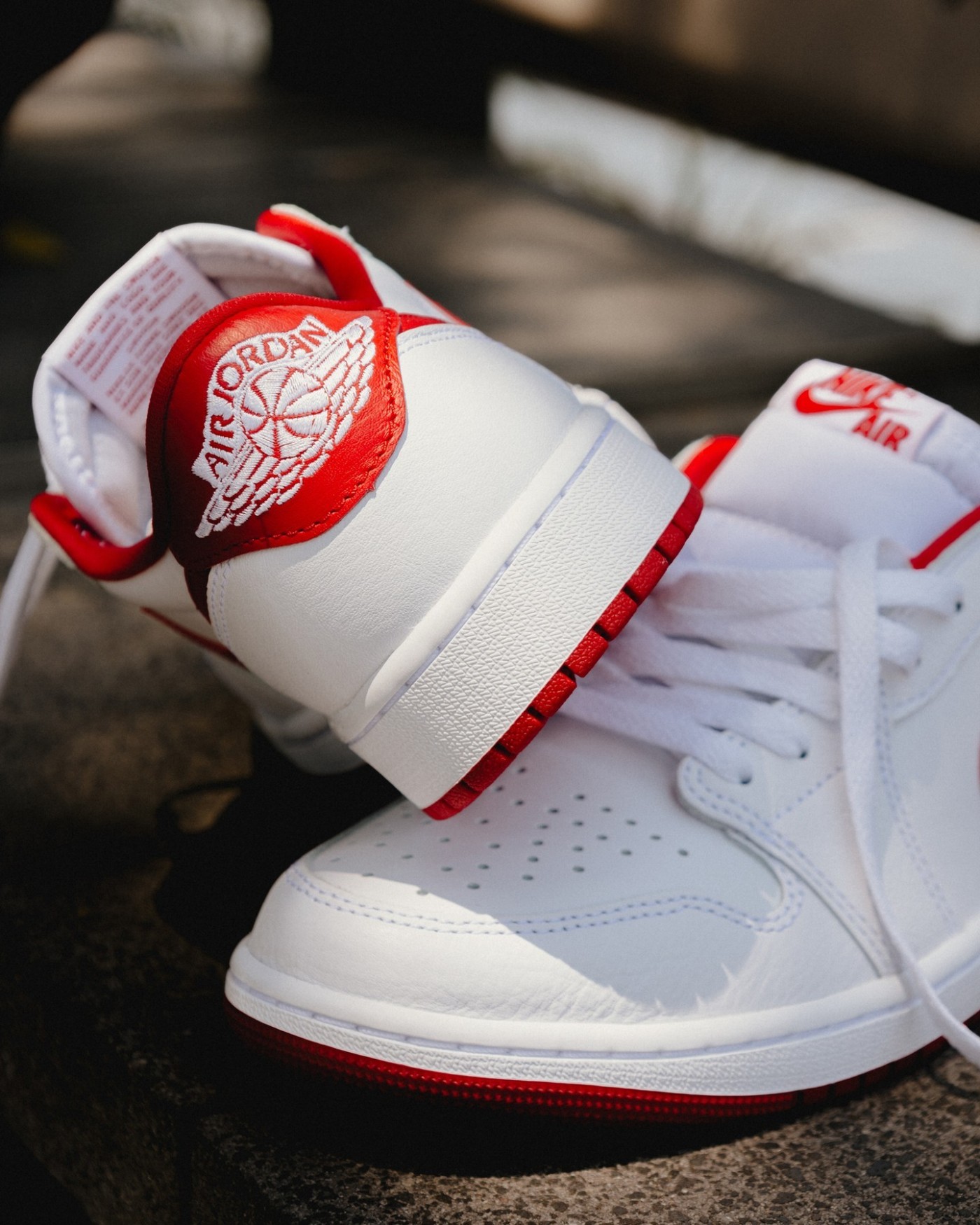 低帮的造型日常穿着更加灵活方便,大学红装点浓郁复古氛围,搭配个 Clean Fit 风格出街就十分合适。