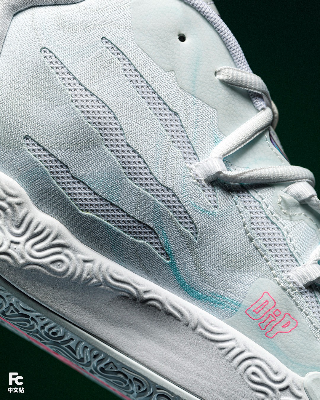 造型类似晕染的颜料,一条条淡淡的薄荷绿交融在鞋面之上。