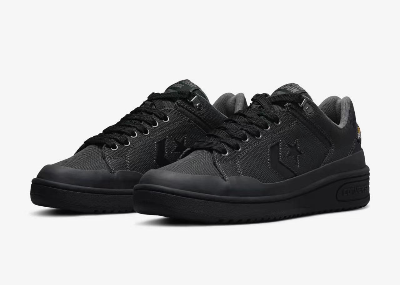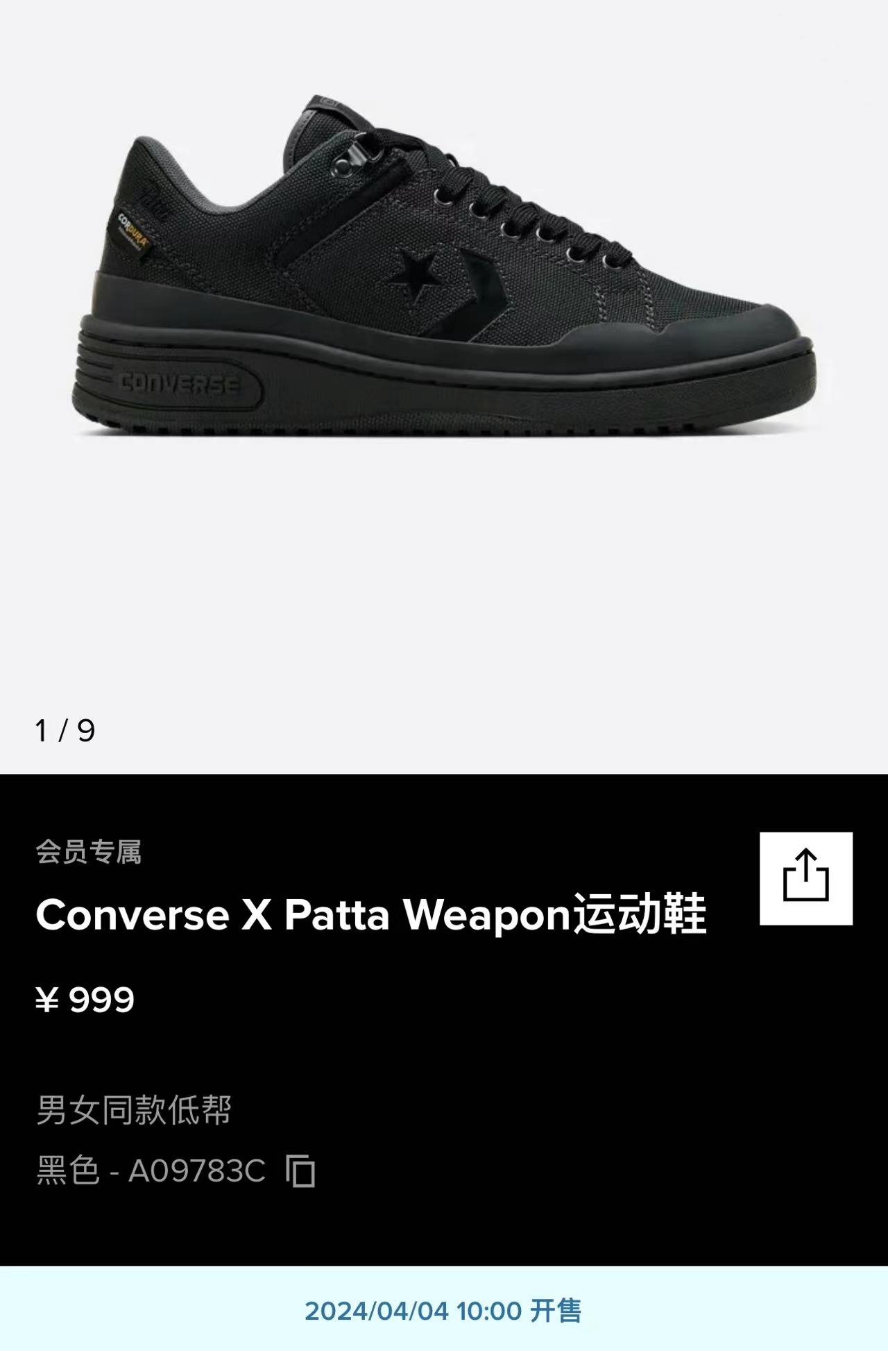 另一双 Patta x Converse Weapon 是更适合夏季上脚的低帮款,一袭黑色鞋身低调百搭。