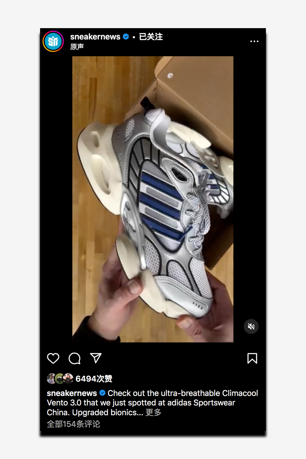 sneakernews 称 CLIMACOOL VENTO 3.0 是该系列迄今为止最透气的鞋款。