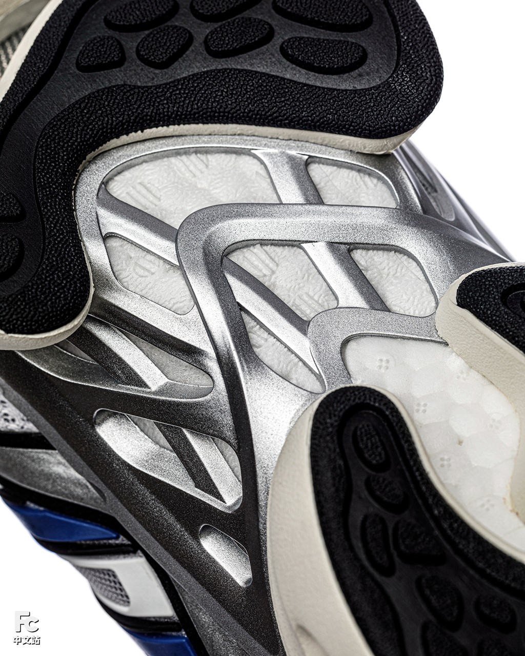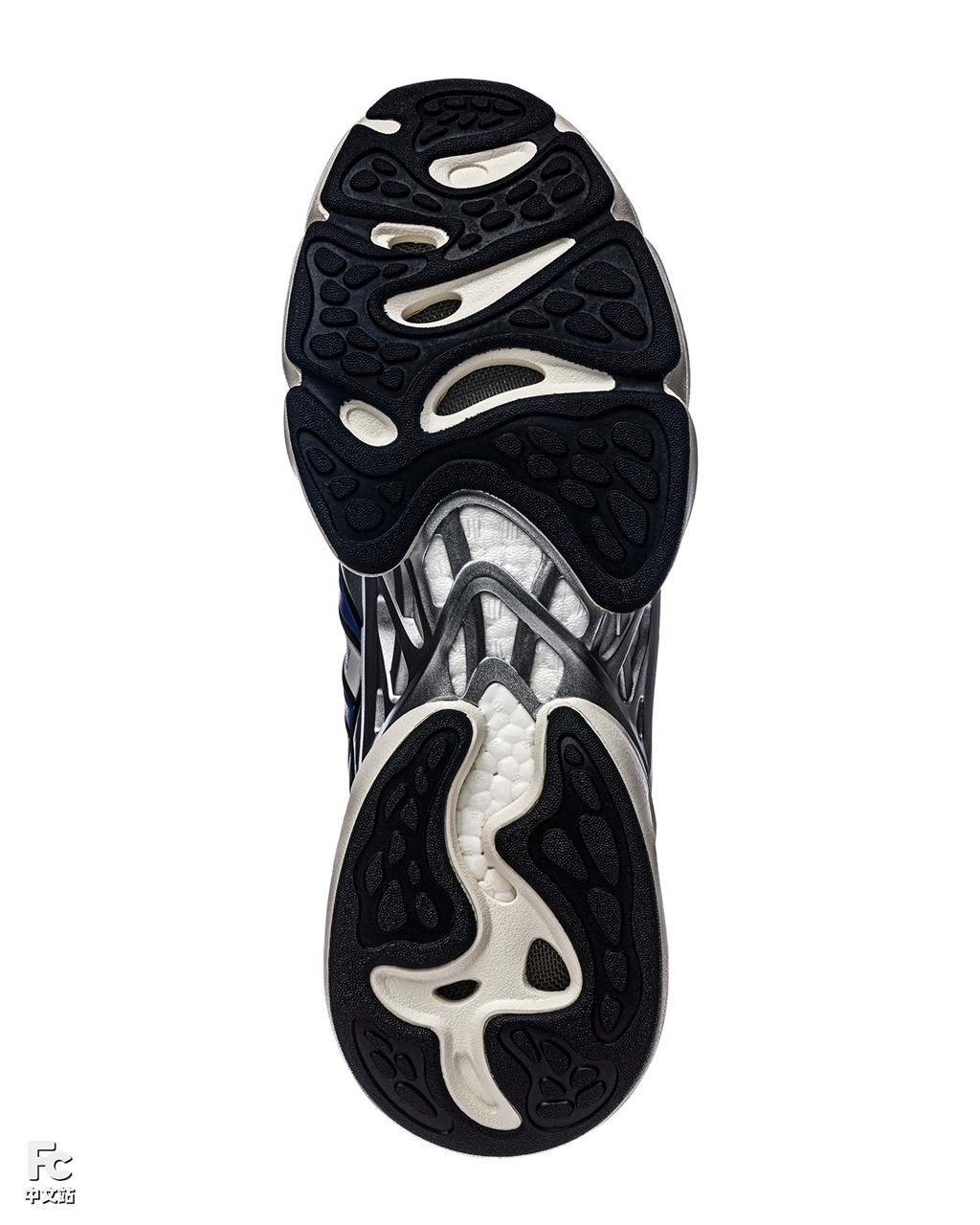 Boost 外层包绕的 EVA 框架进行了镂空开窗处理,带来更极致的透气和轻量化表现。