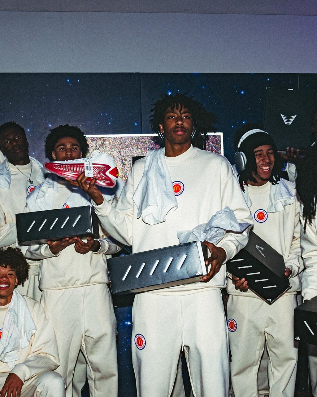 这次麦当劳全美高中明星赛的球员们也已经参加了 adidas 举办的活动,并当场领取了自己的 PE 战靴,实在是给小编酸的够呛。