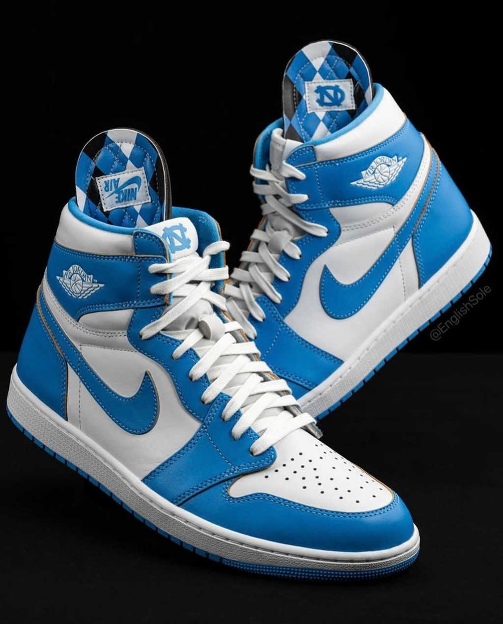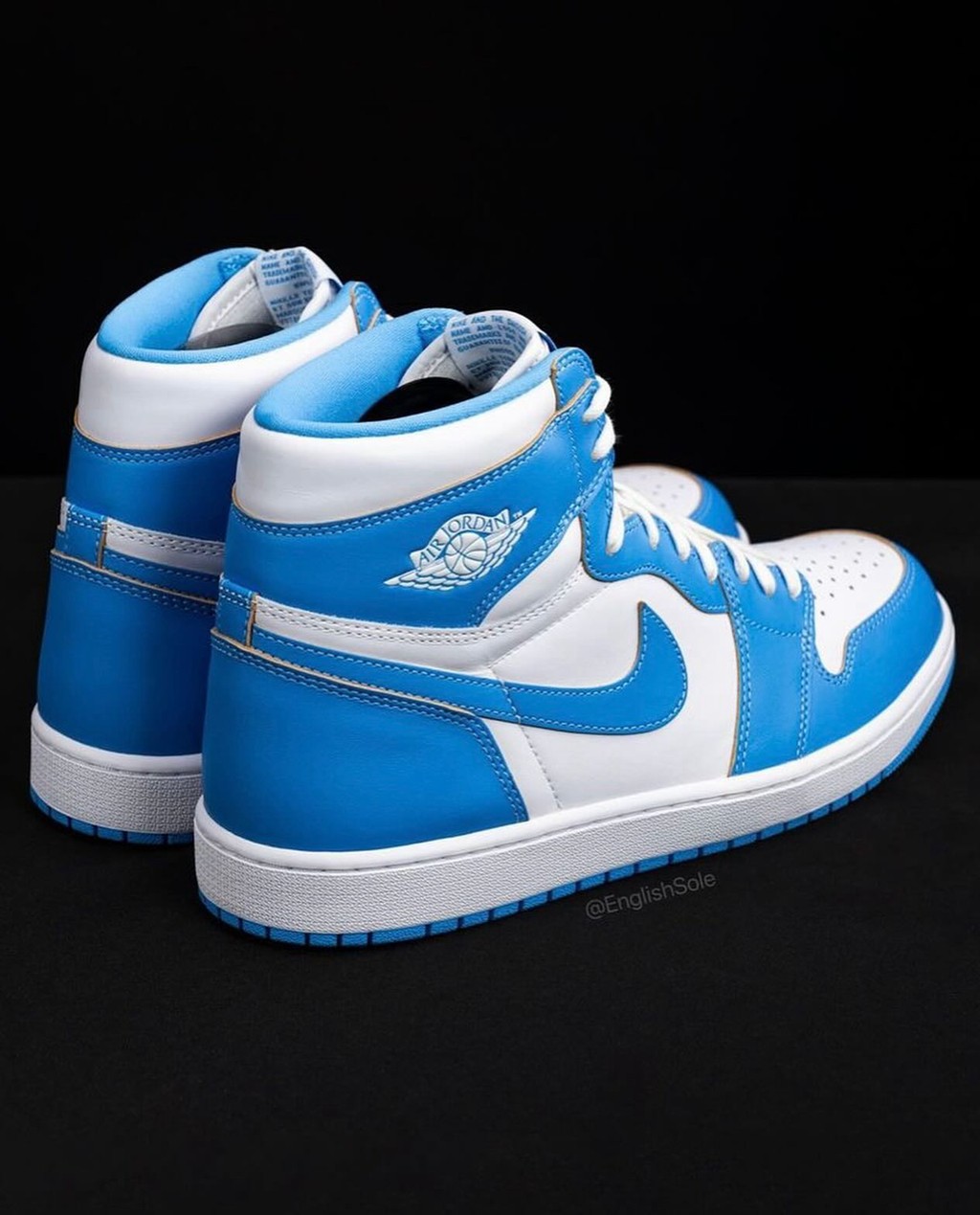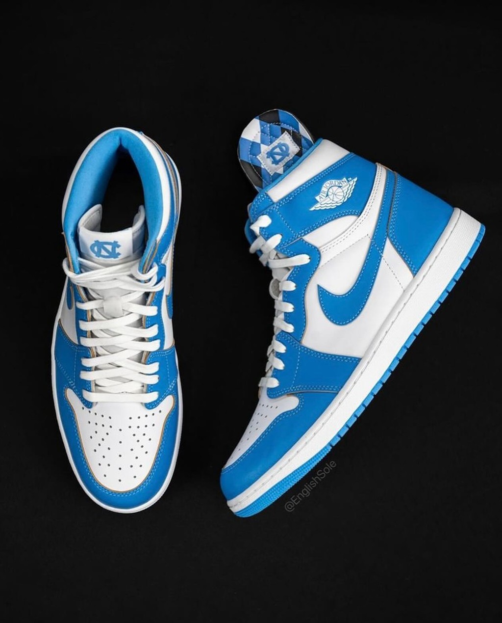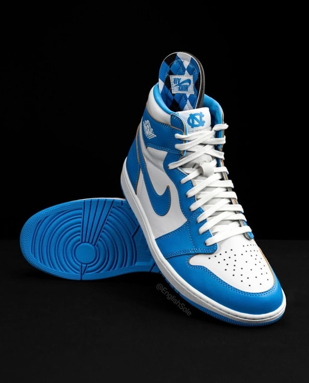 在市售版本里,北卡蓝经常出现在正代球鞋上,其中最为出名的一双当属 Air Jordan 1 “UNC”。