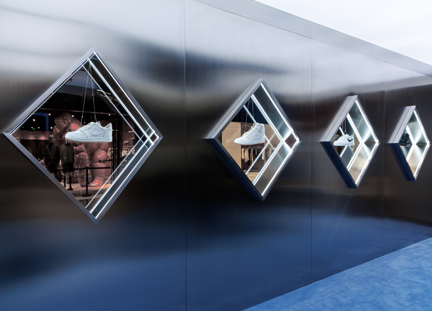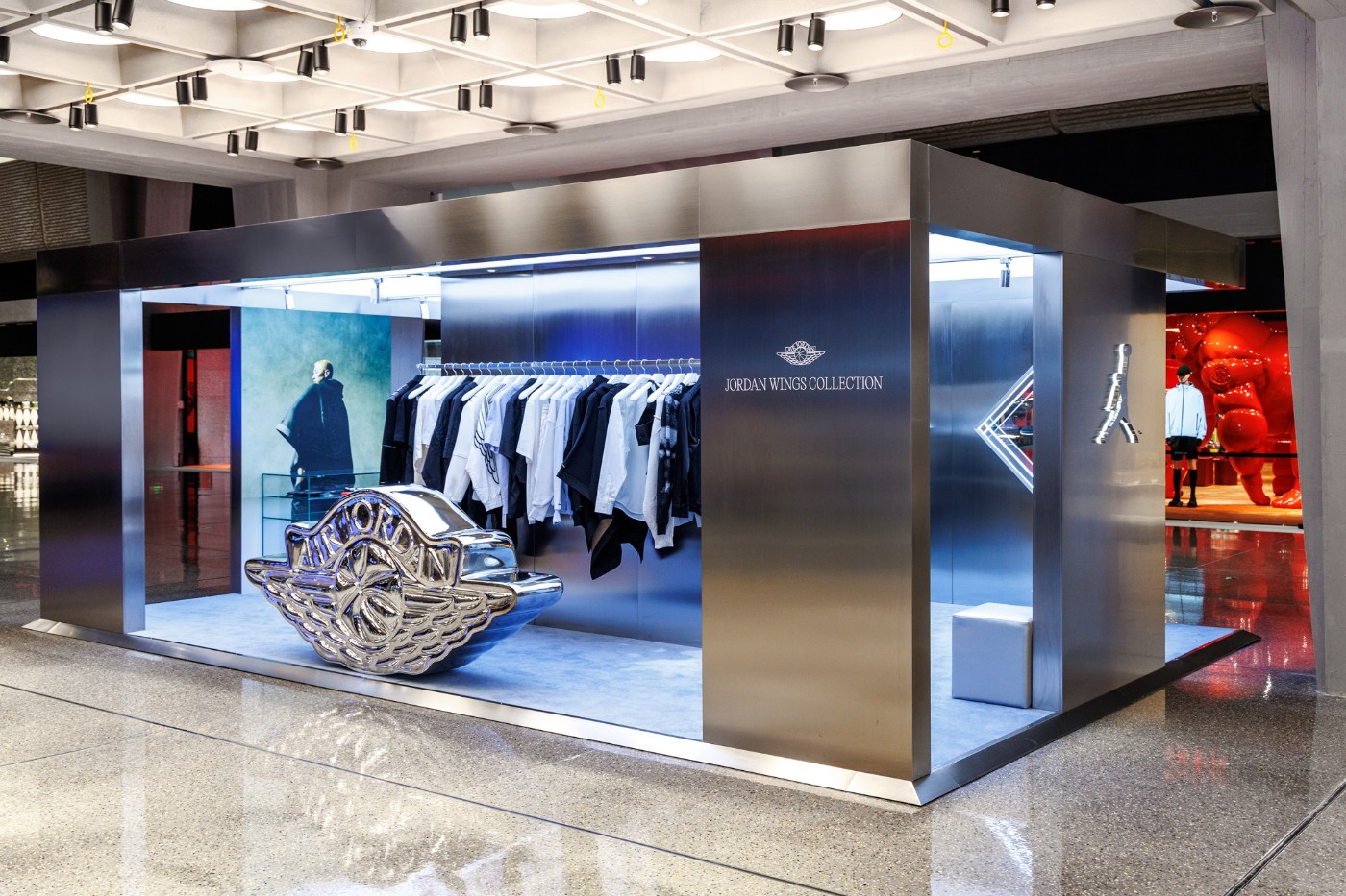 空间设计灵感源自 Jordan Wings 系列,呈现与产品一脉相承的高级、华丽氛围,带来一场视觉和触觉上的奢华之旅。
