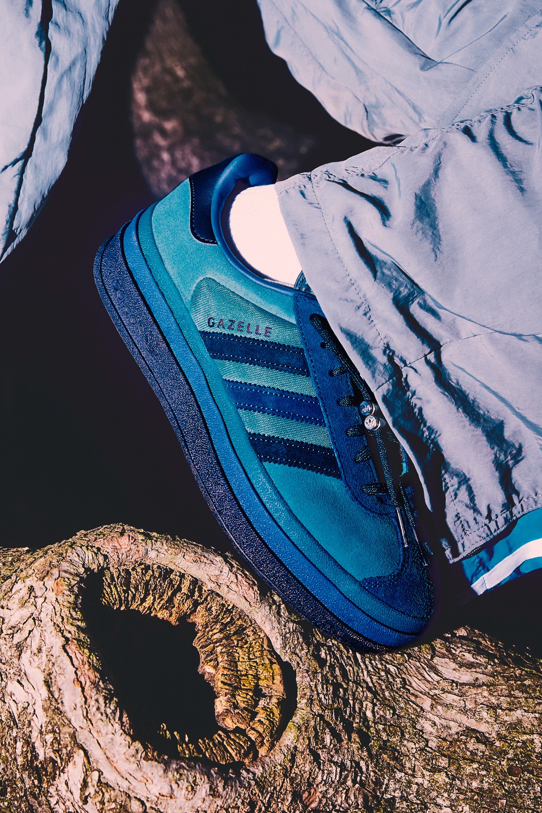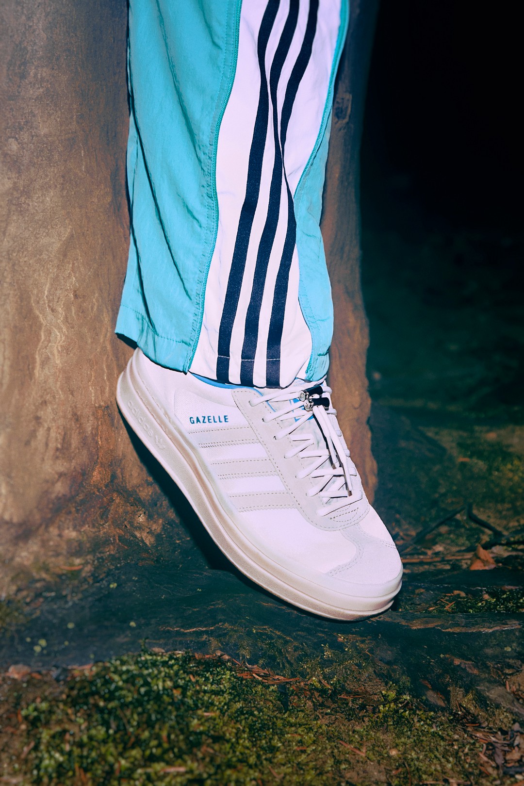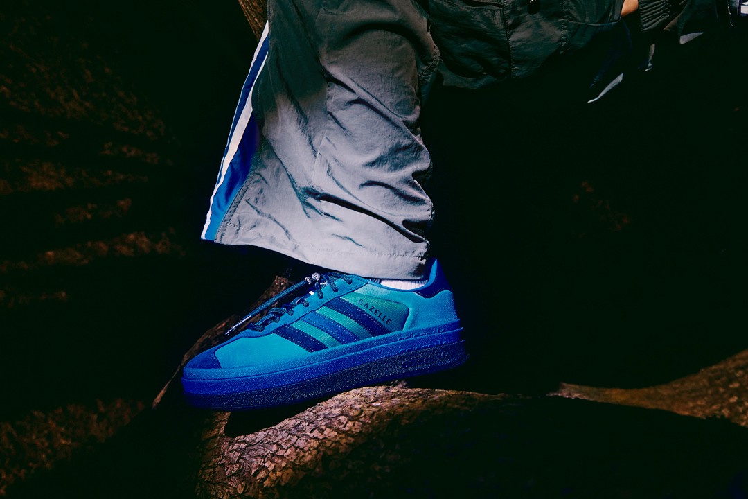 鞋型选用了 adidas Originals「T 头鞋」阵营中经典的 Gazelle,并且为了体现与众不同,特意选择了衍生款式 adidas Originals Gazelle BOLD。
