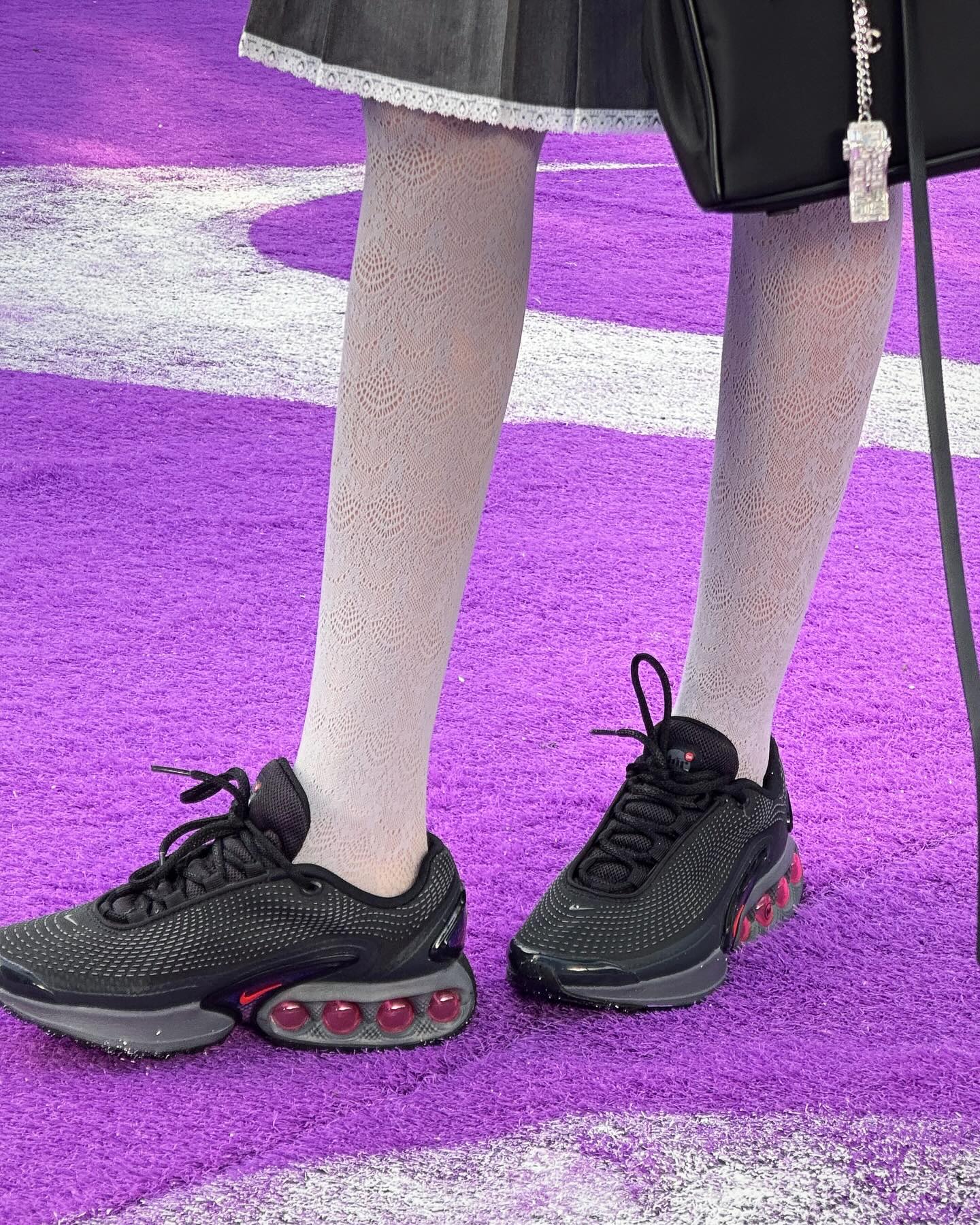 热度超高的 Air Max Dn 也没错过,换上宽松外套、百褶裙,运动属性瞬间提高不少。
