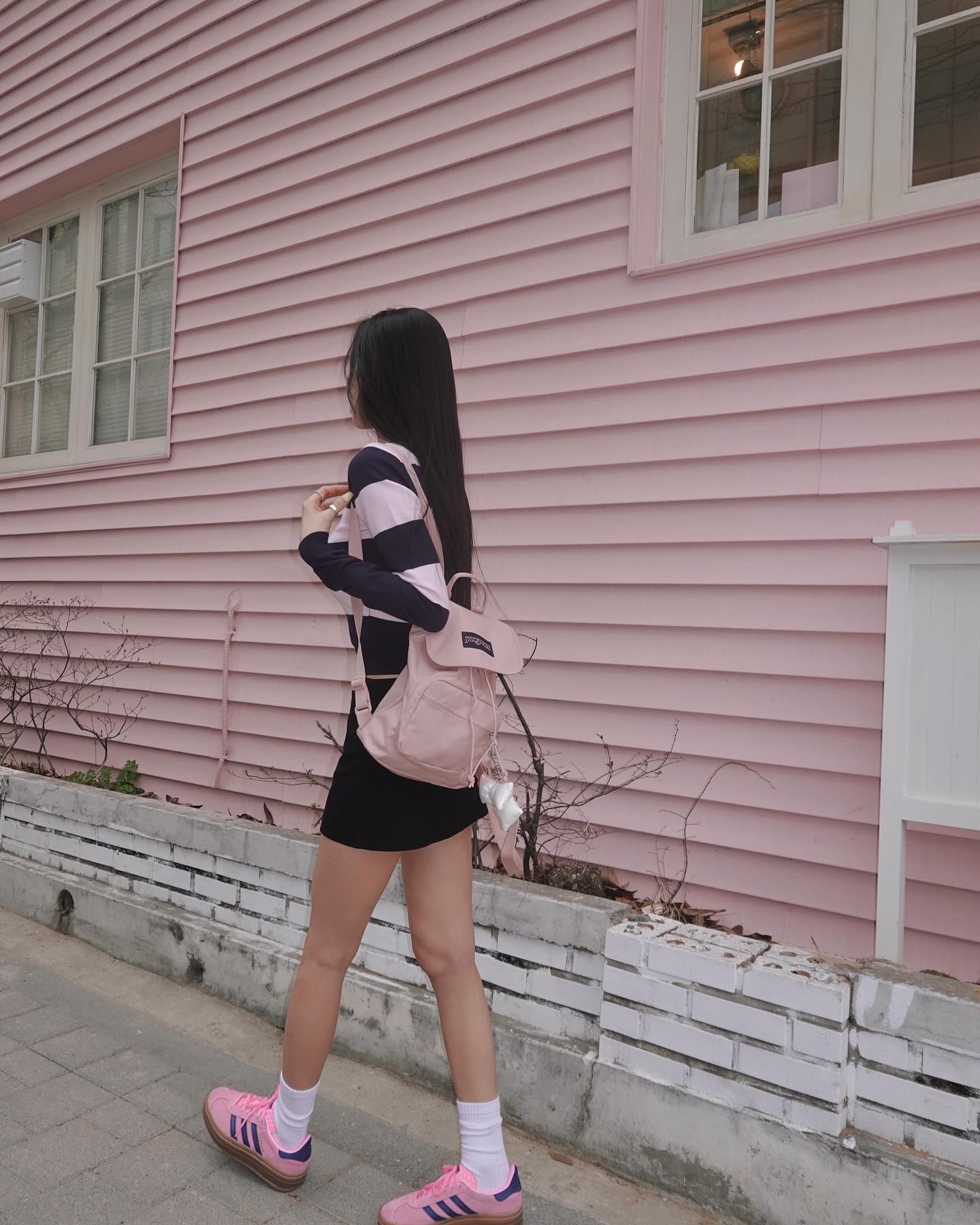 街头造型中绕不开的还有 Gazelle 系列,不过敏希脚上这双是「升级版」。