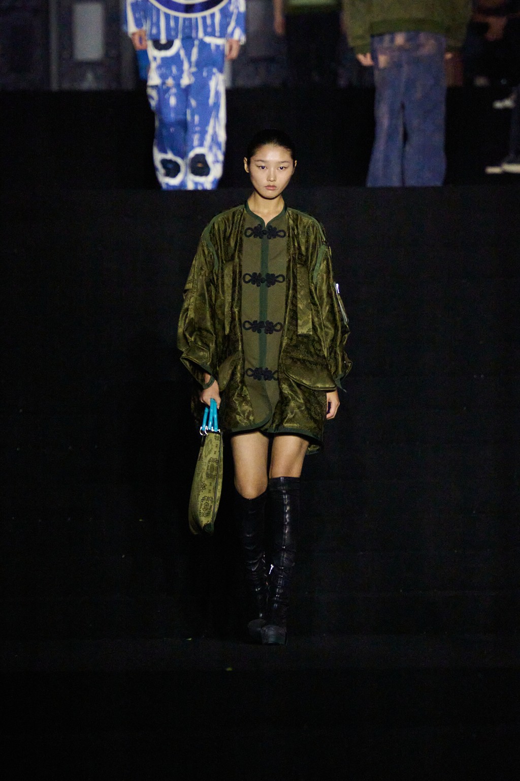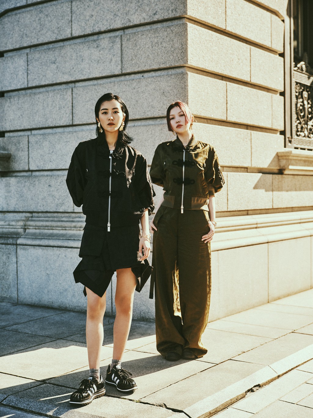 本季 CLOT x sacai 系列服饰包括多款外套、长裤和半截裙。