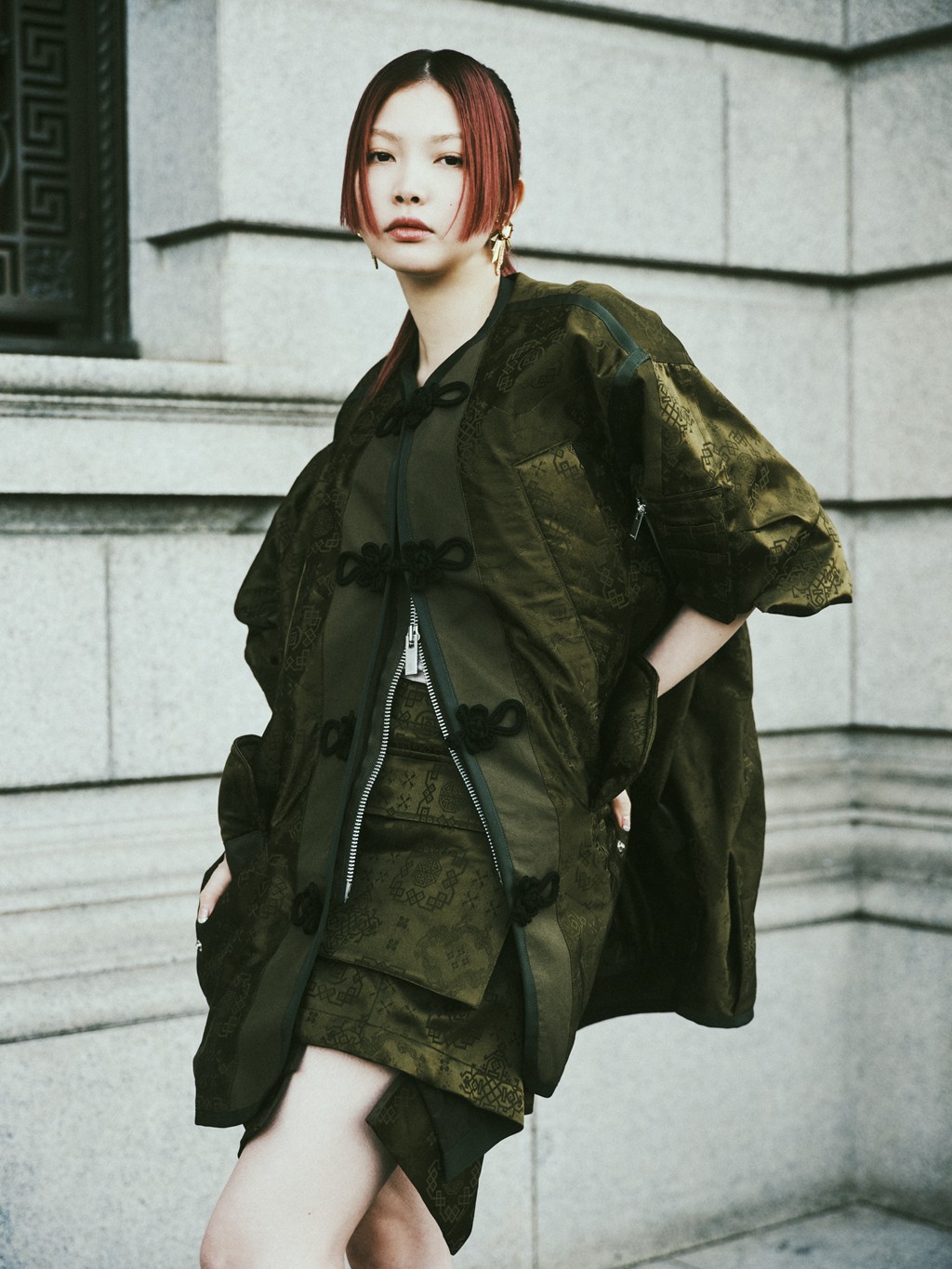 运用 CLOT 经典「丝绸」面料,融入 sacai 标志性廓形剪裁,带来耳目一新的视觉效果。