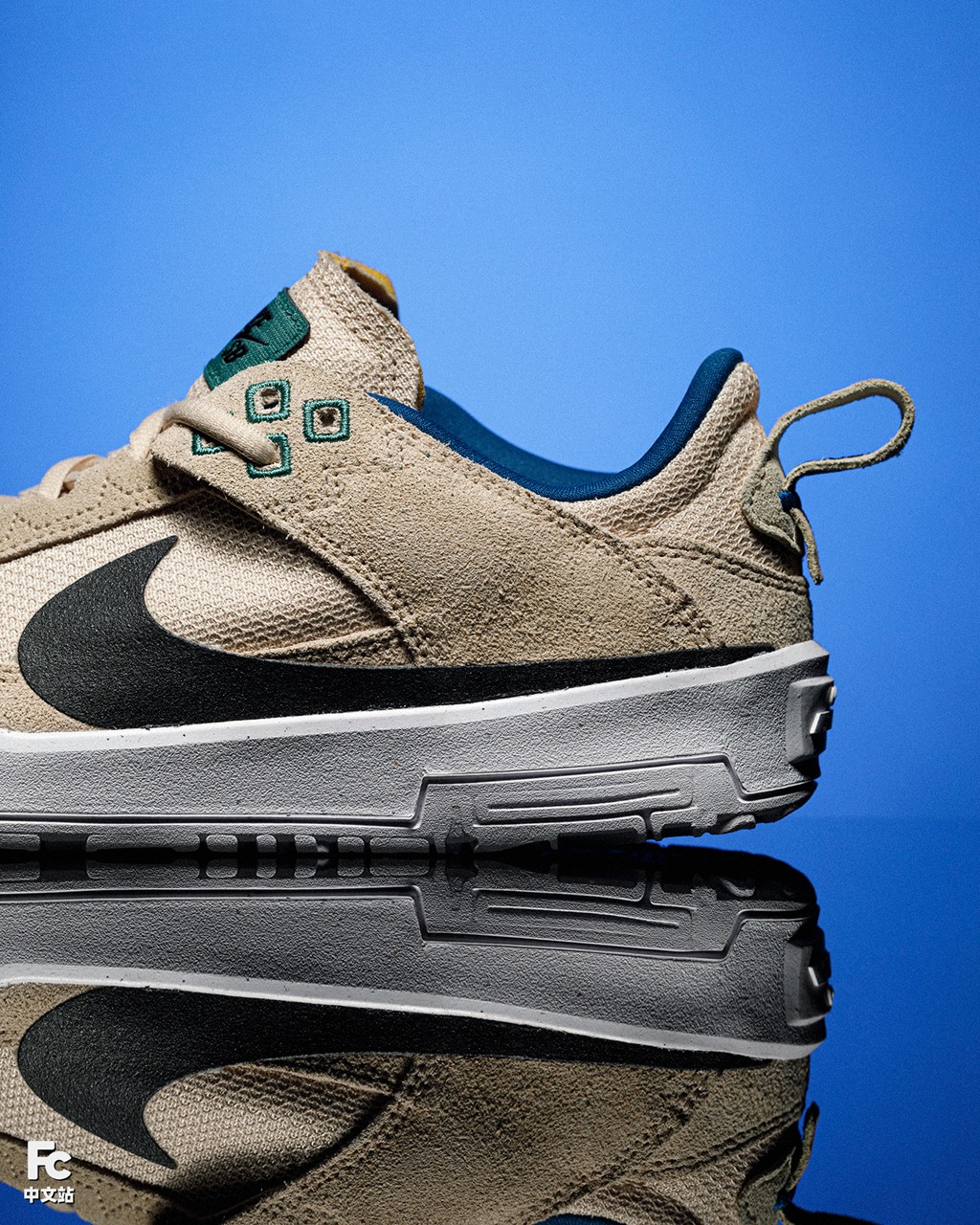 侧身 Swoosh 的角度更加 “贴地”,与内侧的 “反钩” 相互呼应,释放出轻松惬意又个性鲜明的视觉观感。
