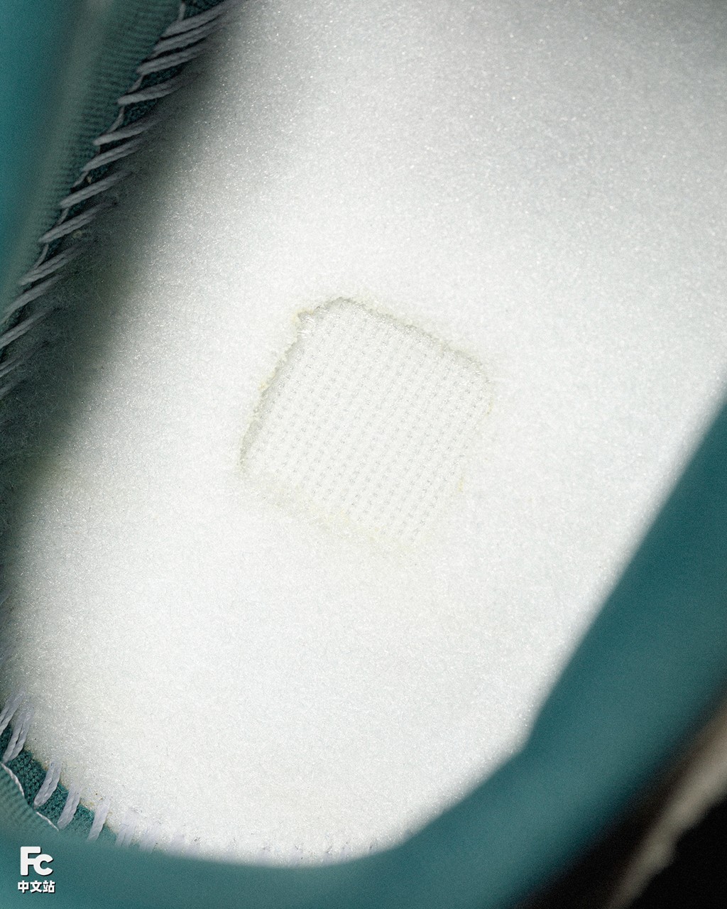 同样的蓝绿鸳鸯设计,还以非对称的方式出现在鞋头刺绣、鞋舌织唛和内衬上。
