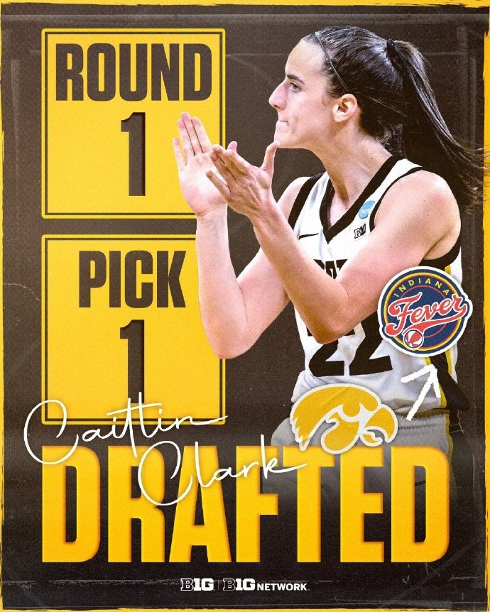 前日,印第安纳狂热第一轮第一顺位选中状元身份的 Caitlin Clark。