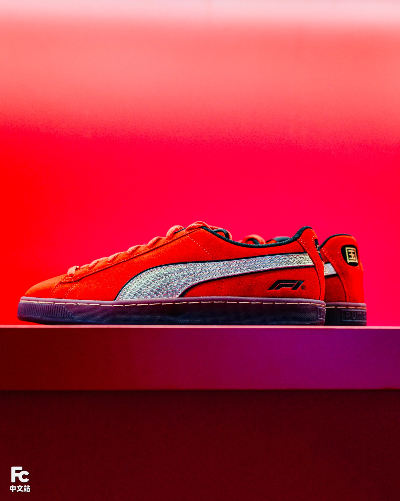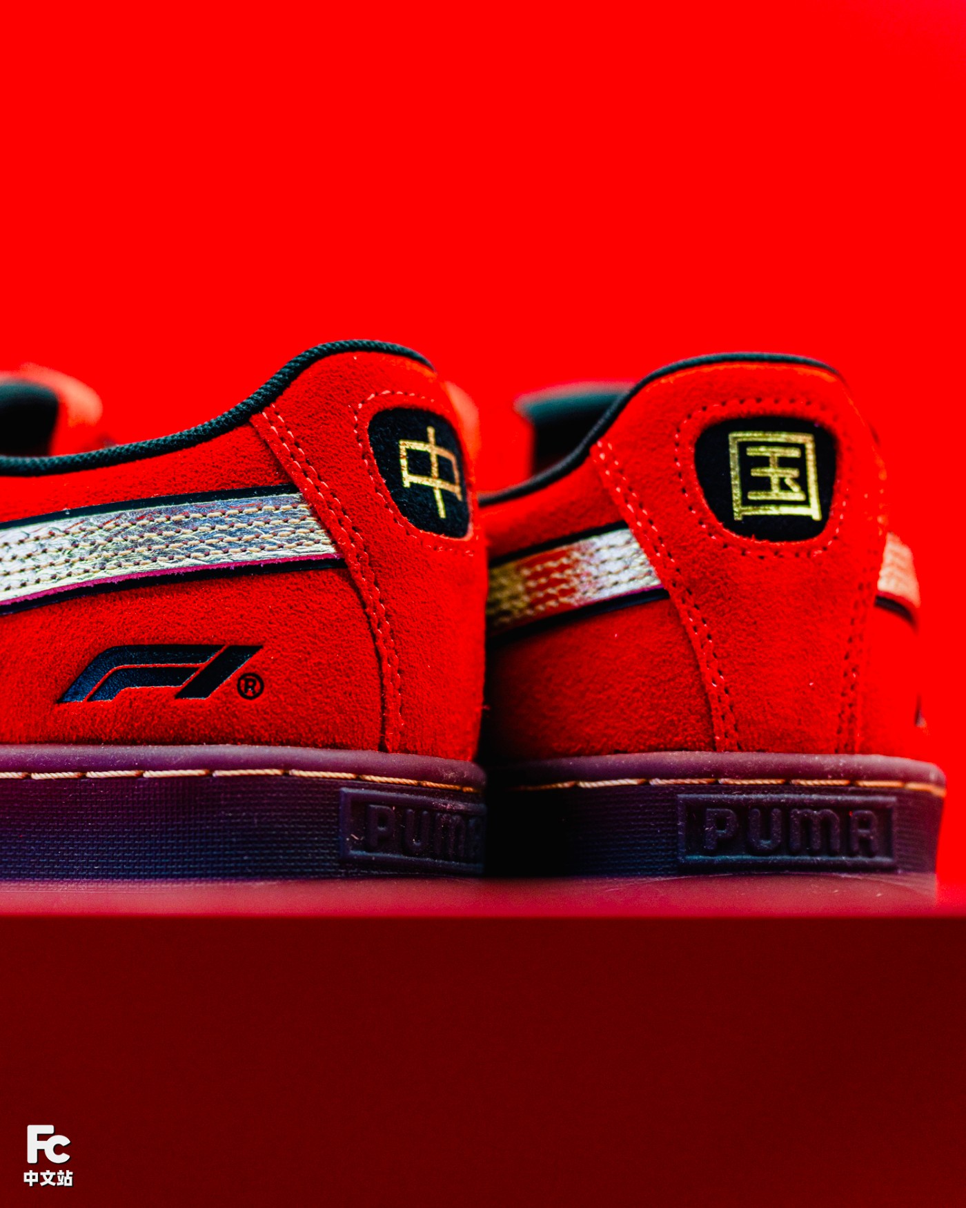 其中 F1 Chinese GP Suede 通过中国红鞋面衬托「龙纹」与「中国」汉字元素,传递勇猛无畏与拼搏进取,日常上脚更有着独具一格的赛车辨识度。