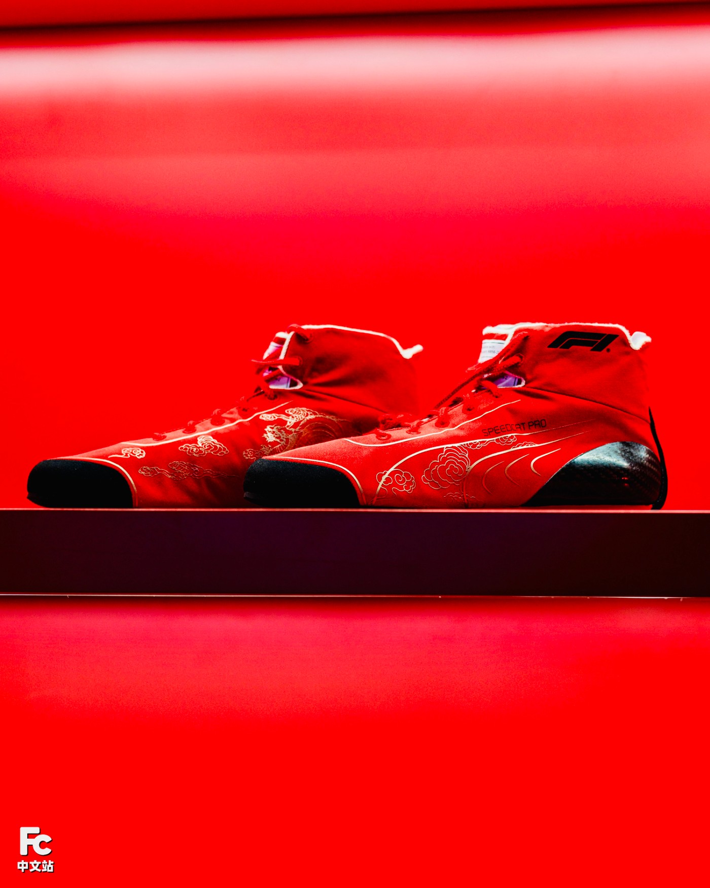与车手们脚上同款的专业赛车鞋 F1 Chinese GP Speedcat Pro,本次不仅在设计上融入中国传统文化元素,更是在专业性上保持了 F1 赛事的极致要求。