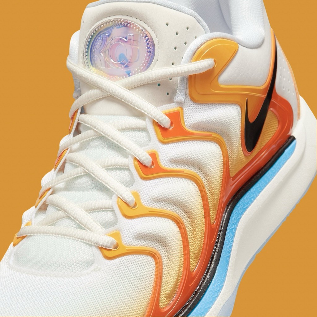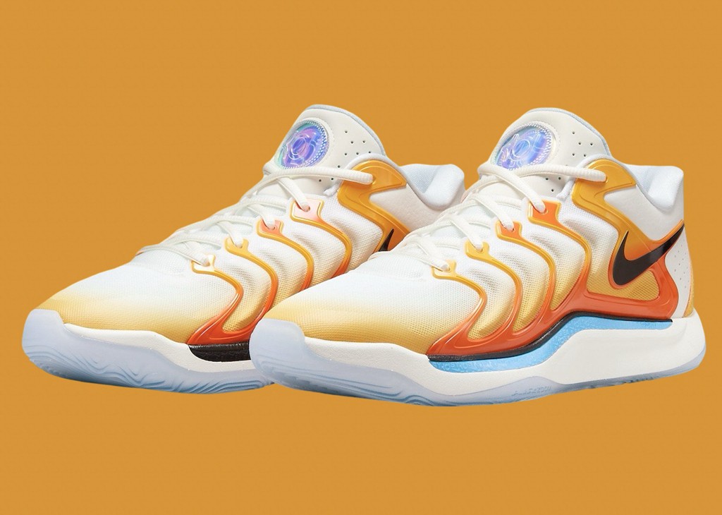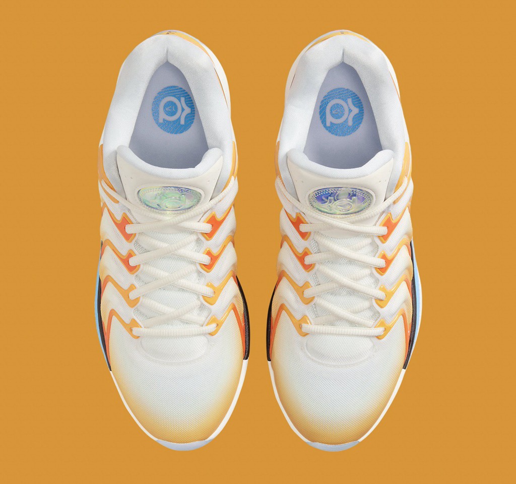 首发的 “日出” 配色既代表杜兰特效力的太阳队,某种程度上也在暗示 KD 的接班人正如同朝阳般升起。