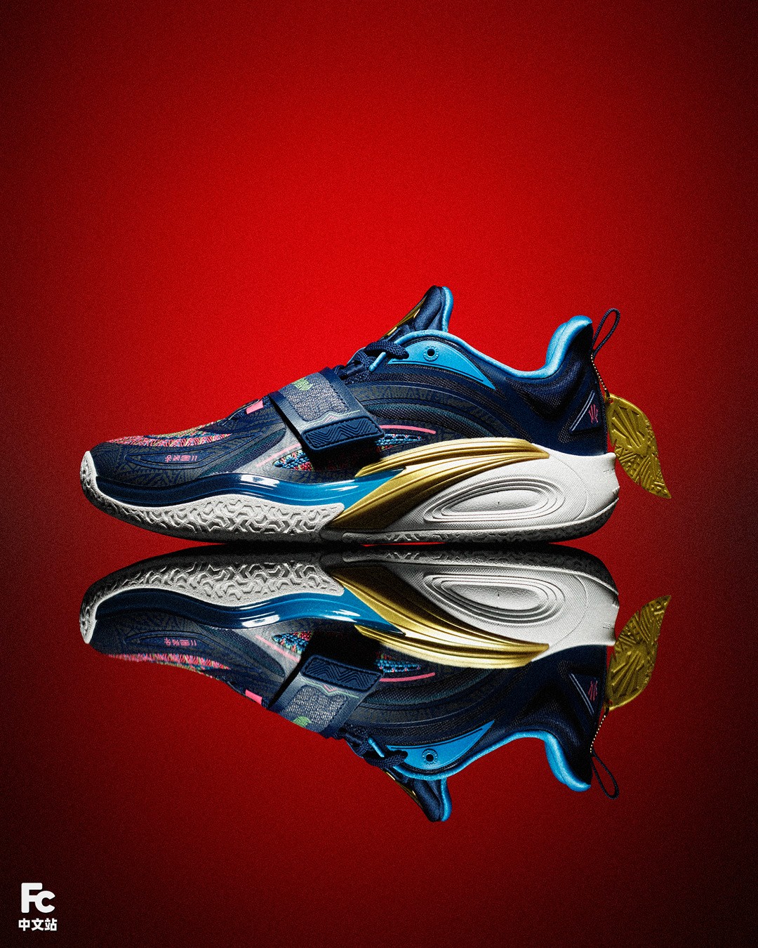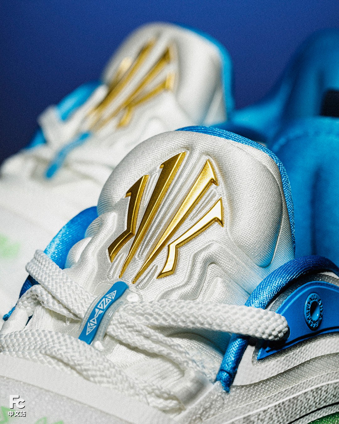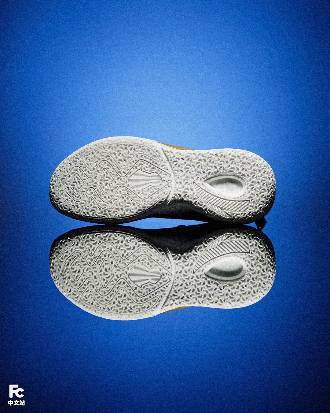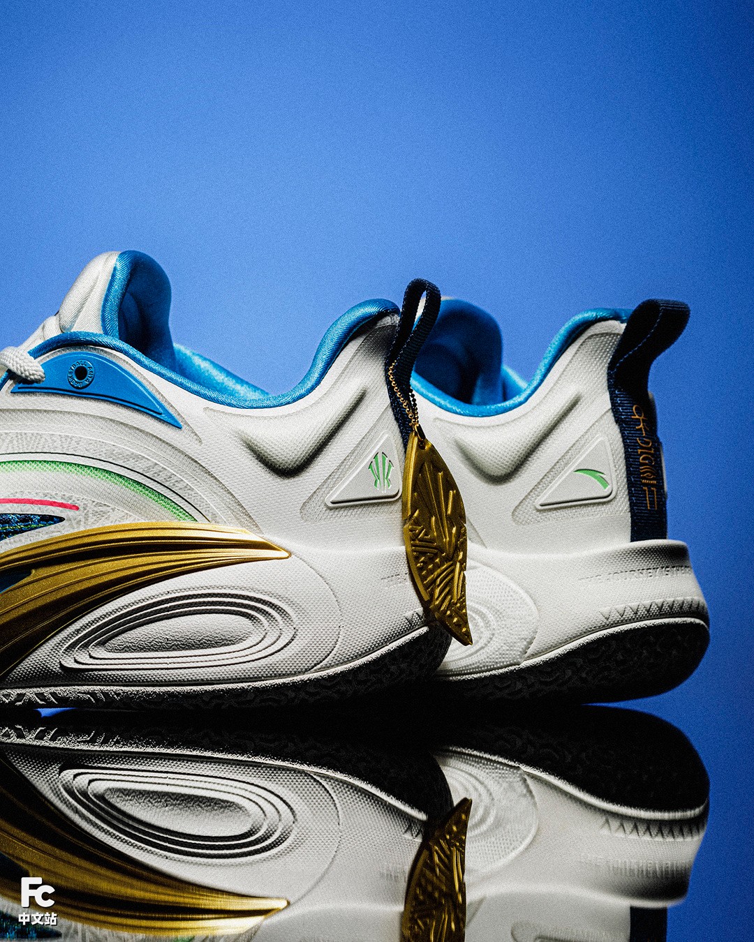渐变 TPU、金色安踏 Logo、鞋身暗纹等,均延续了主场配色的设计。