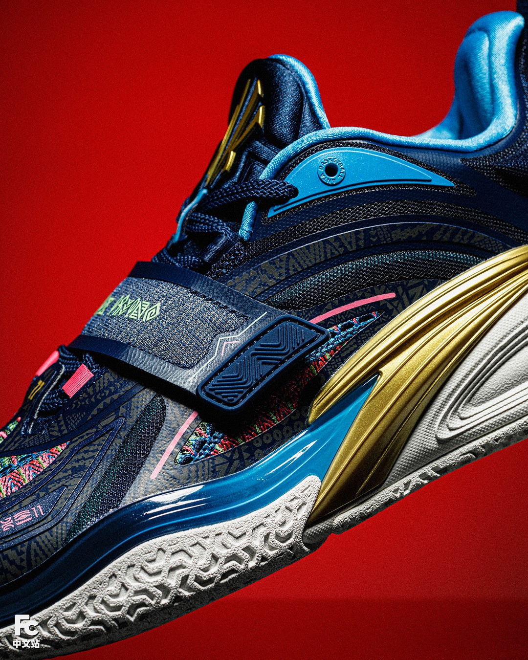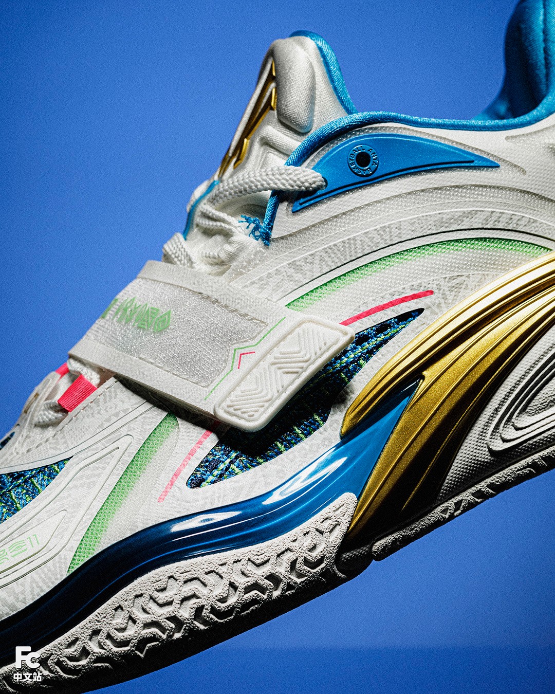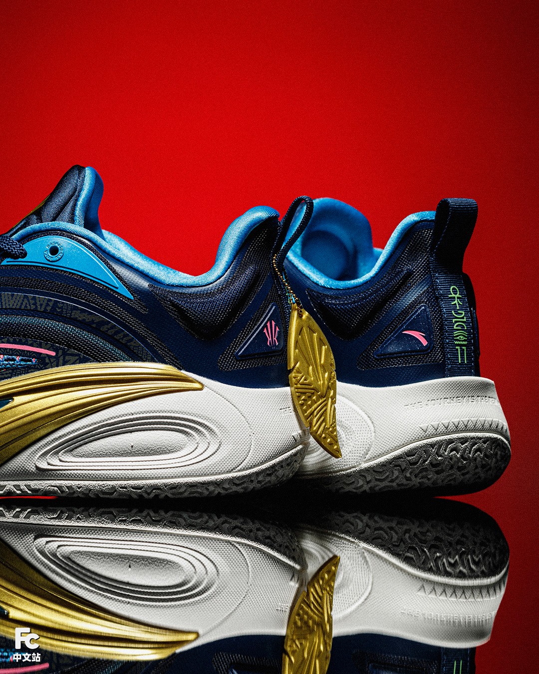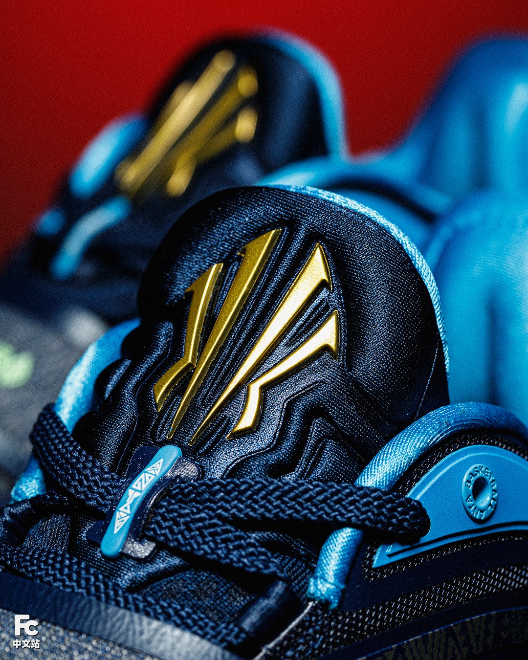 渐变 TPU、金色安踏 Logo、鞋身暗纹等,均延续了主场配色的设计。
