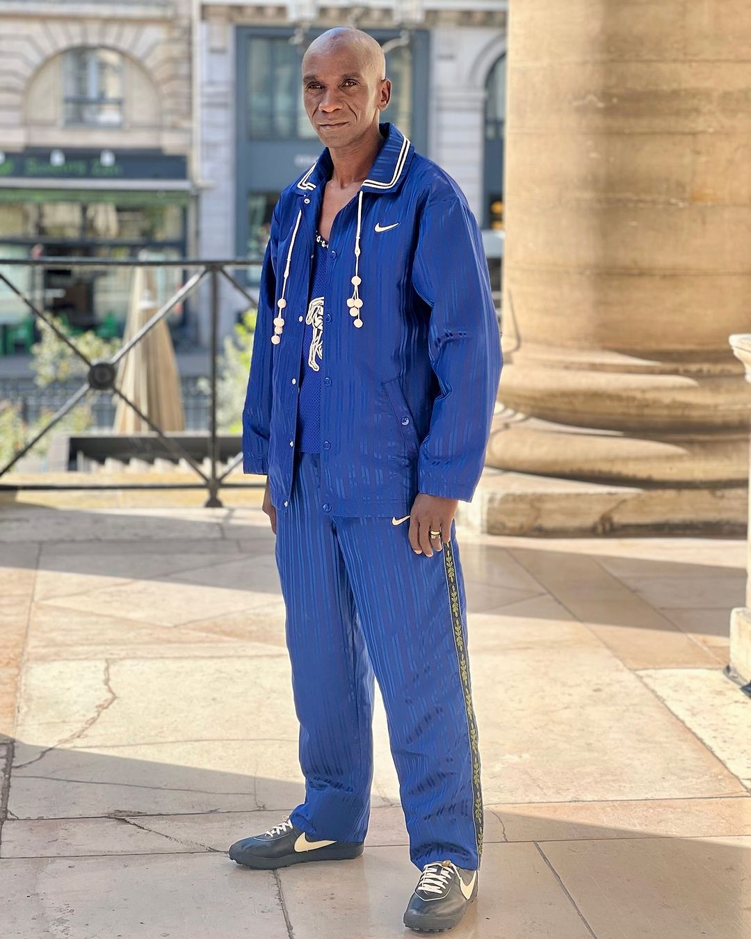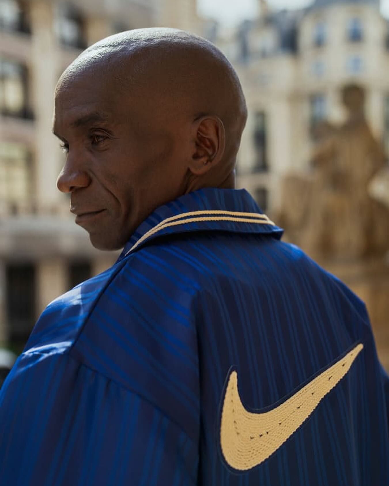 基普乔格在巴黎的新造型让人眼前一亮,服饰单品来自于 BODE x Nike 联名系列。