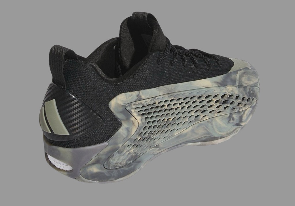 岩石色 adidas Logo 搭配碳纤维纹理 TPU,带来非常硬朗的外观造型。