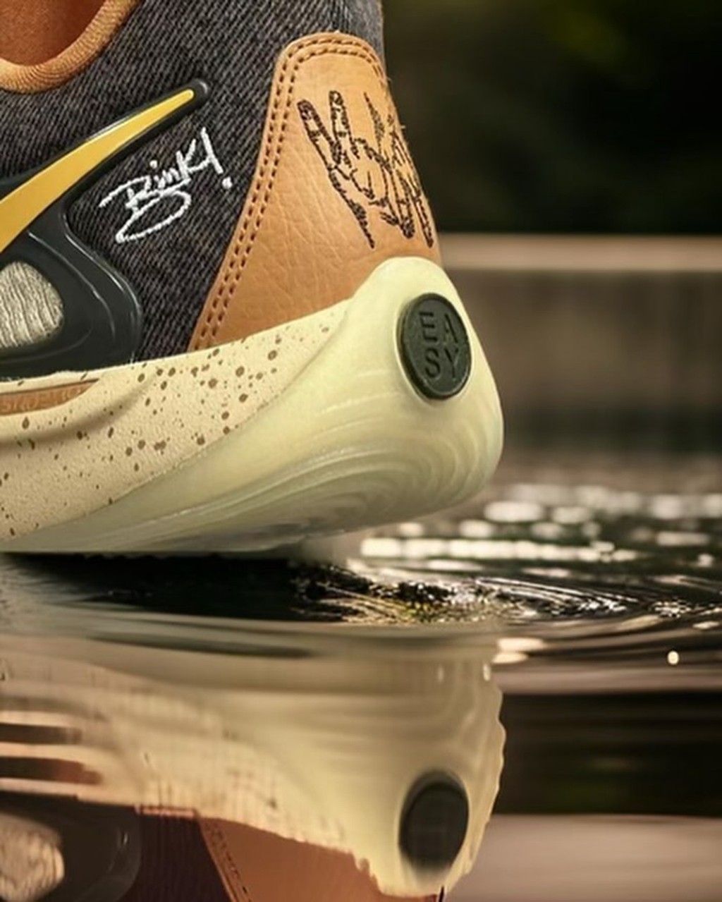 细节方面尤其之多,像是后跟部分有着充满街头气质的手势刺绣,还有 BINK! THE HUMBLE MONSTA 的签名。