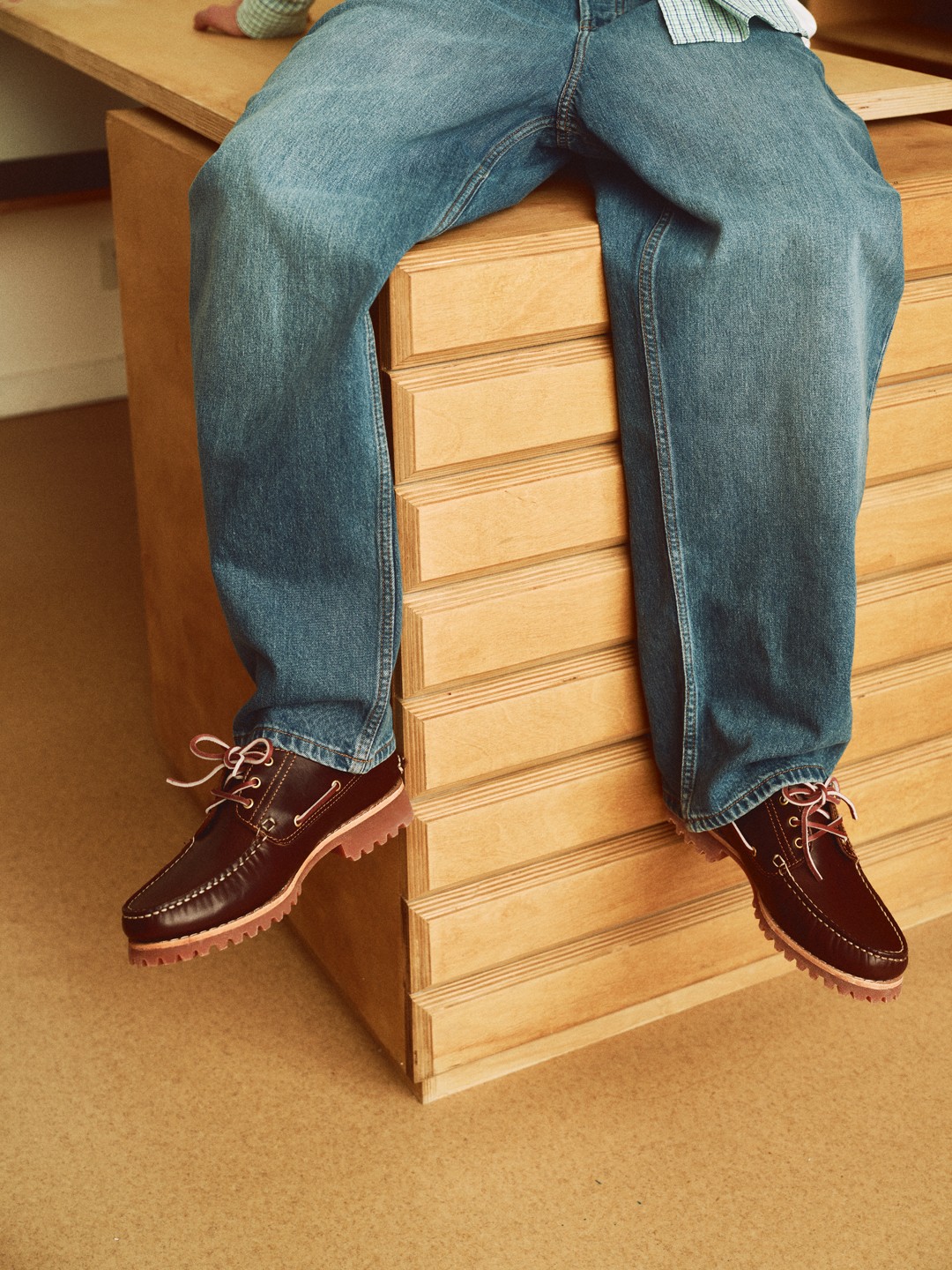 为了满足陆地耐磨性的需要,Timberland 创新性的将「大黄靴」橡胶大底移植过去,自此诞生了「水陆两栖」的 Timberland「船鞋」。