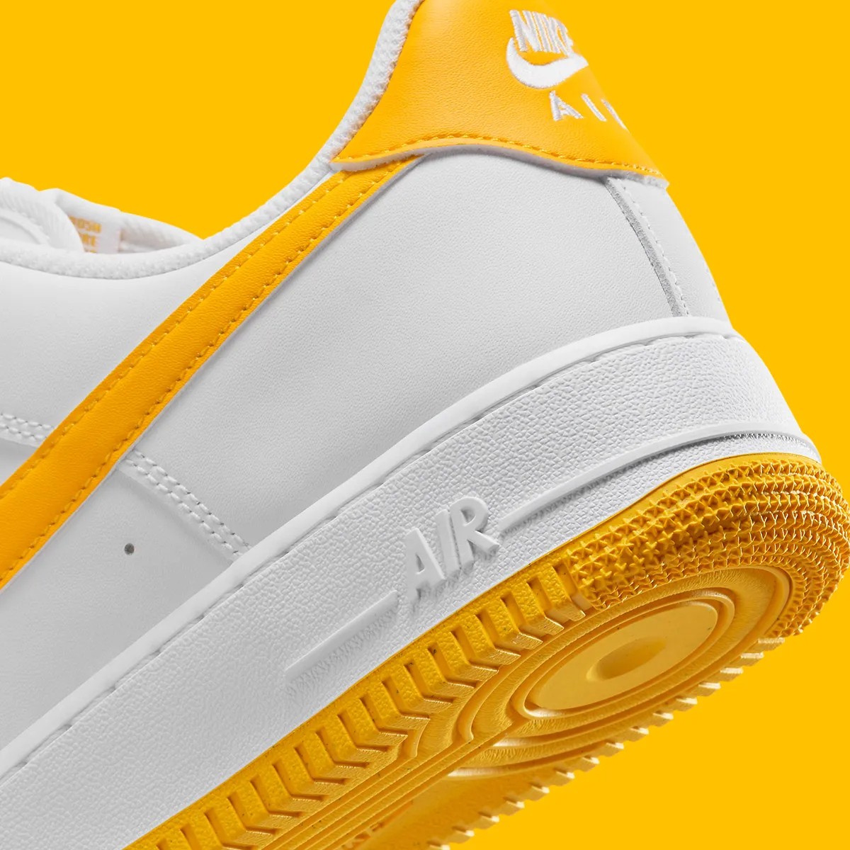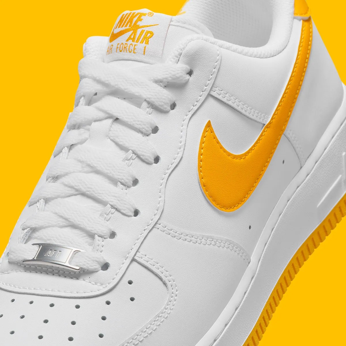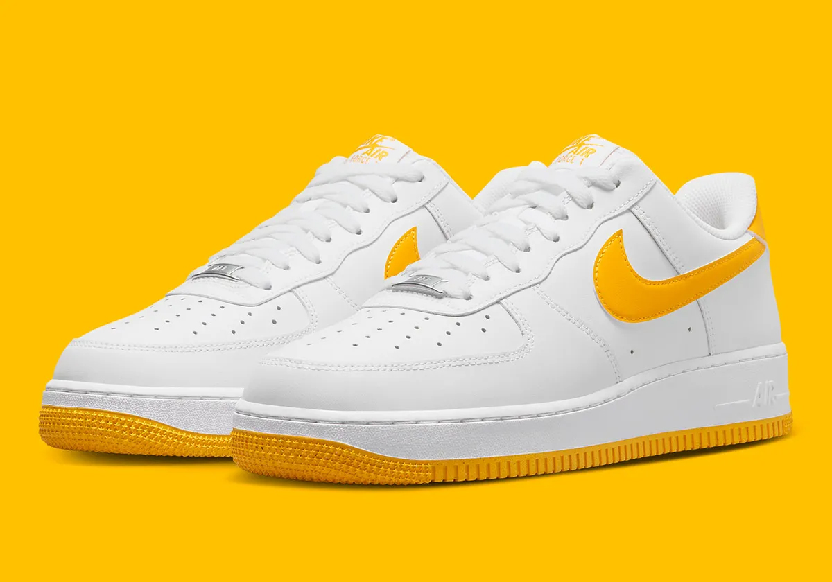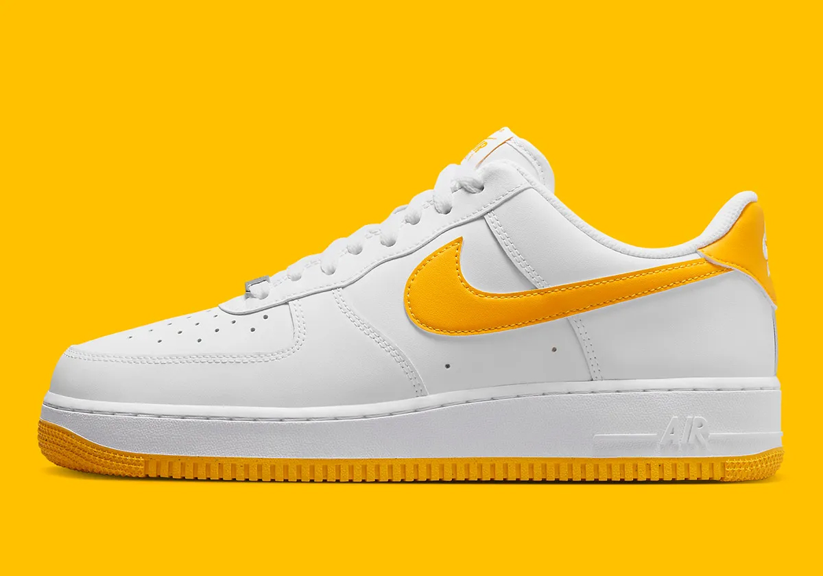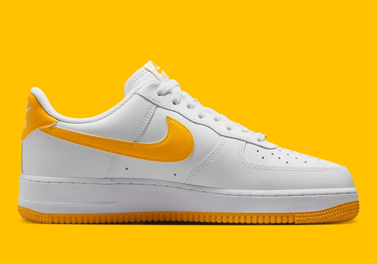 这次采用经典低帮造型示人,一袭纯白衬托,明黄色调点缀鞋舌、鞋侧 Swoosh、后跟及外底。
