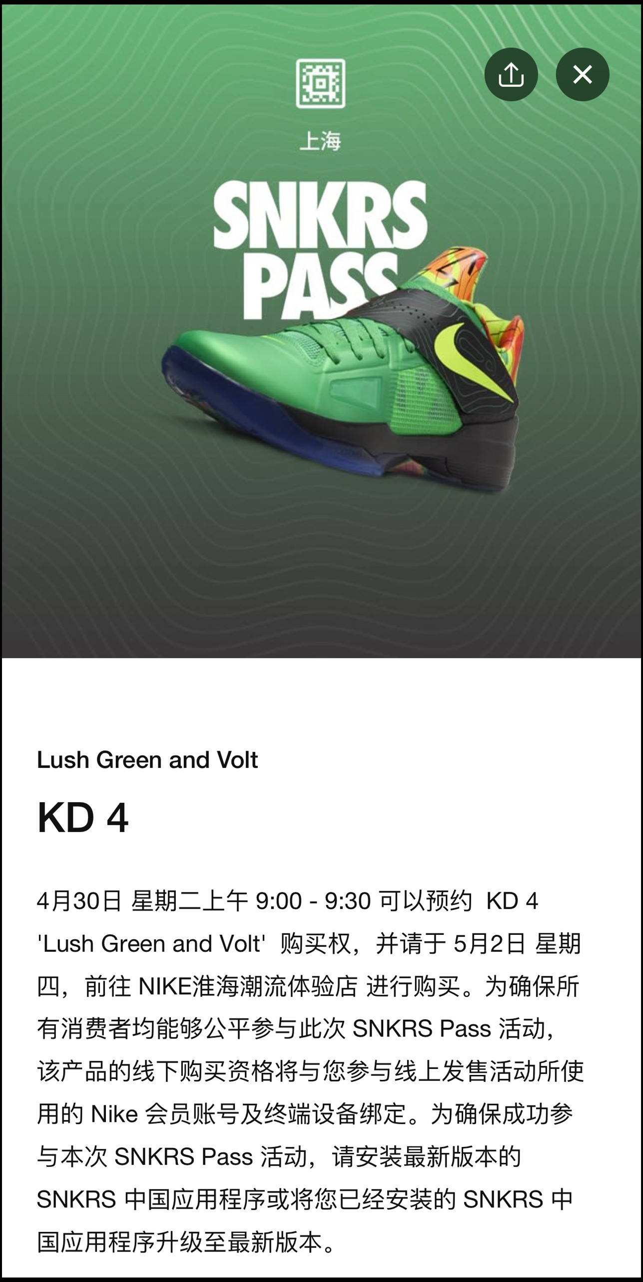 除了这双「TS 新倒钩」,许多兄弟都在等的 KD4「气象员」今早也迎来了上海 PASS 小范围登场。