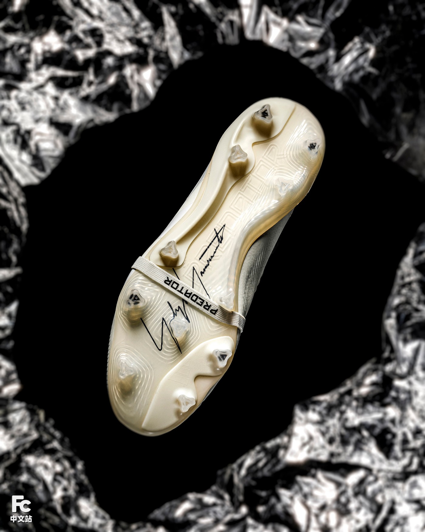 顶级 FG 大底除了配有强加筋补强外,映衬的山本耀司签名与透明刻印的 Predator 标志,都彰示着独一无二的专属身份!