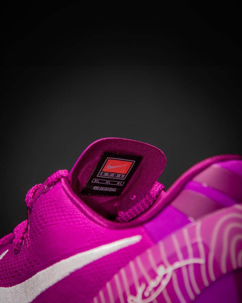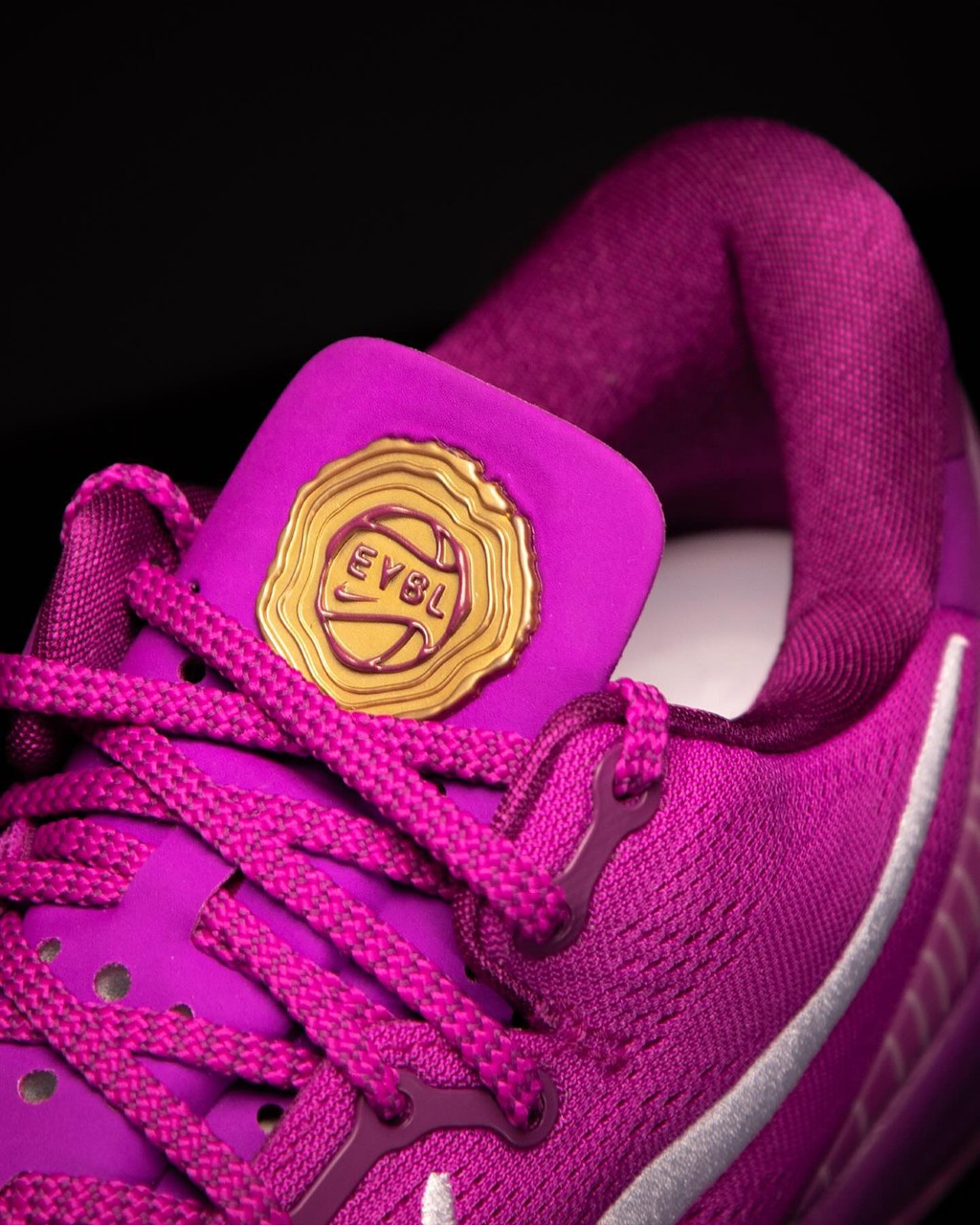 配色则延续 EYBL 系列一贯的骚气气质,大量玫红色覆盖鞋身,后跟 TPU 和外底则点缀线条纹理。