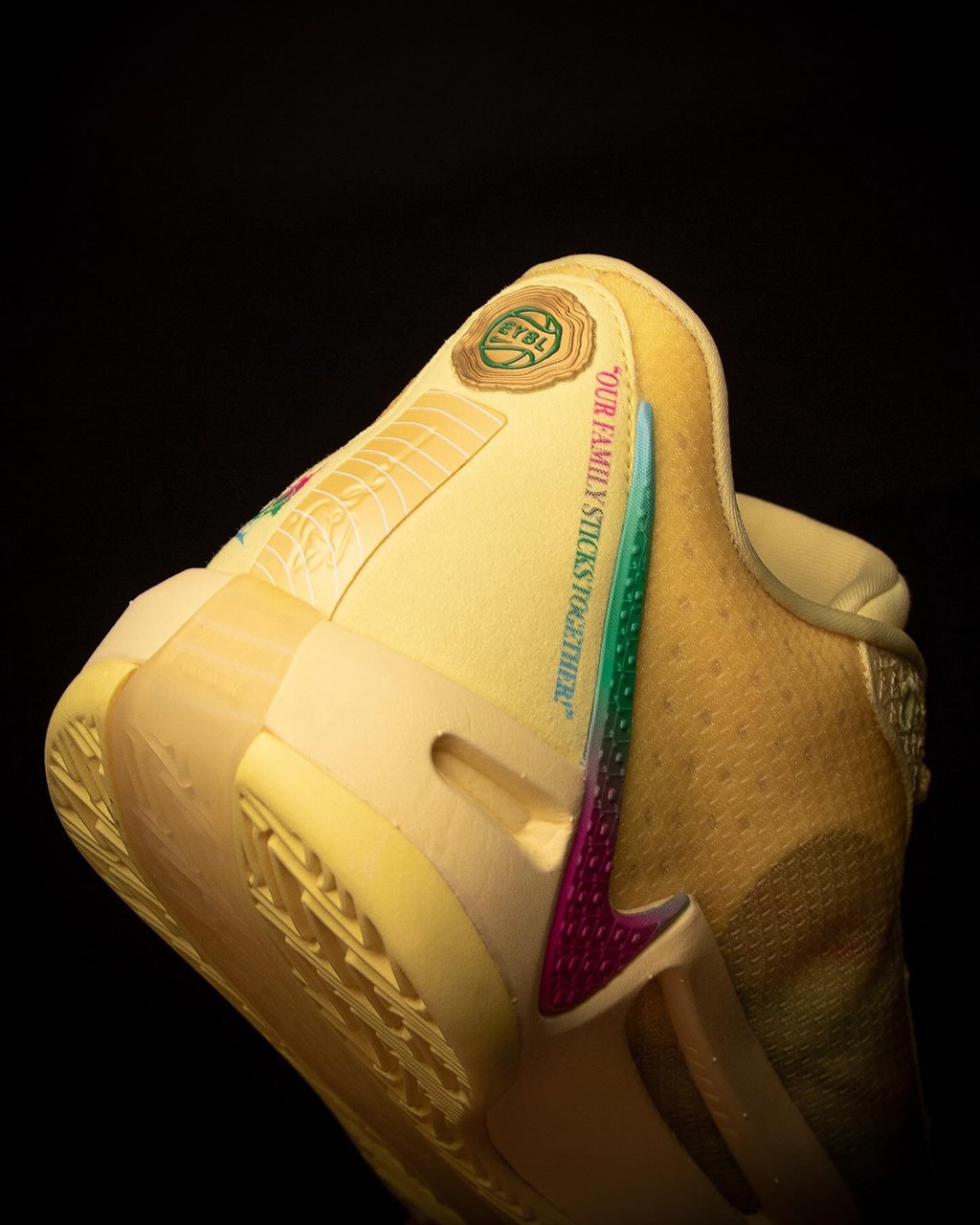 鞋身字样表明配色身份,EYBL Logo 则被留在了后跟。