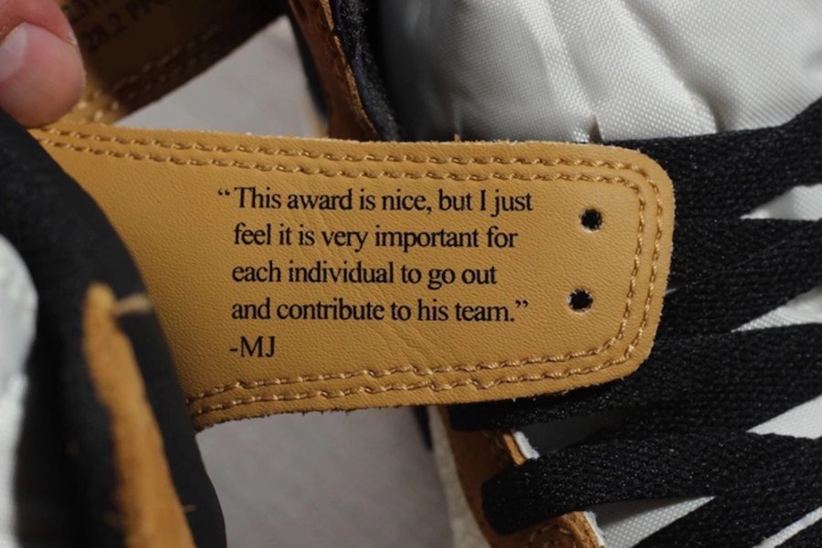 关于这双鞋的灵感大家也不陌生了,以乔丹获得最佳新秀领奖时穿着的棕色衬衫为灵感打造。