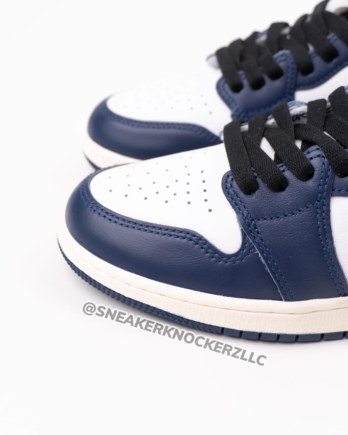 首先来看这双 Air Jordan 1 High OG “Midnight Navy”,和此前偷跑的渲染图基本一致。