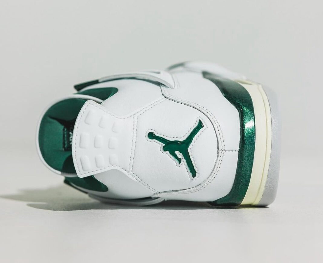 后跟晶莹的半透质感 Jumpman Logo,传递如同翡翠一般的质感,完善全部设计。