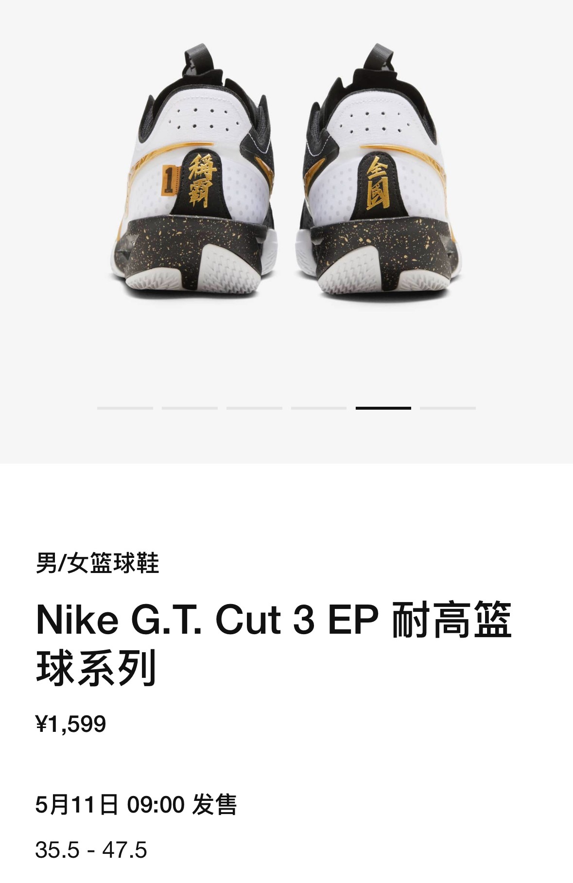 这双实战利器迎来了全新的 “耐高” 主题配色,黑白撞色配合华丽的金色细节勾勒,后跟还加入了 “称霸全国” 字样,纪念意义直接拉满。