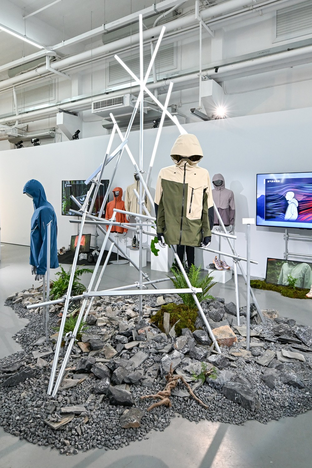 此次 Salomon 线下发布会以「极简∙演变」为主题,通过艺术展览形式,带领观众沉浸式体验「一件探千山」理念背后的演化过程,传递以一件冲锋衣,应对日常户外多场景所需。