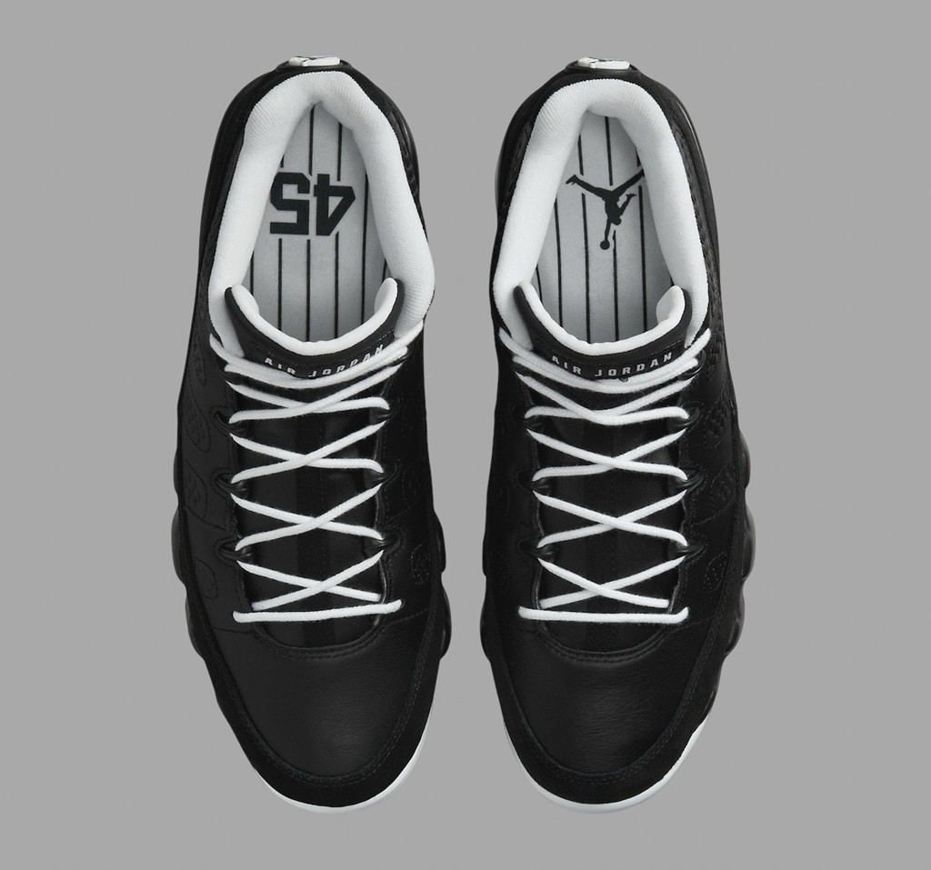 乔丹第一次退役后参加棒球联盟的故事相信大家都很熟悉了。 近日,一双高尔夫鞋版本的 Air Jordan 9 就选择以乔丹的棒球生涯为灵感,打造全新配色。 鞋身颜色代表乔丹曾效力的伯明翰男爵队,黑白是球队标志性特征。 鞋垫则印有经典的竖条纹以及乔丹当时的 45 号。 后跟 45 号不仅为精致的刺绣工艺,字体也换为更具复古艺术风格的手写体。 虽然是高尔夫版本,但将鞋底的鞋钉拆卸后也能当做正常球鞋穿着。 据悉,全新 Air Jordan 9 Golf “Barons” 将于本月登场。