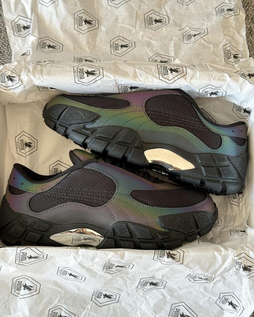 首先是鞋型上就足够有科幻感,再加上鞋身全息材质的使用,在特定角度下提供极强的辨识度。