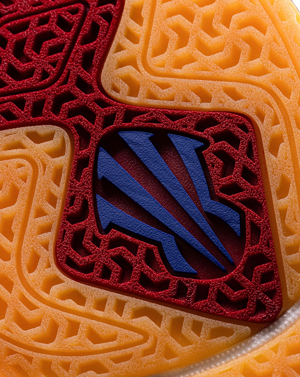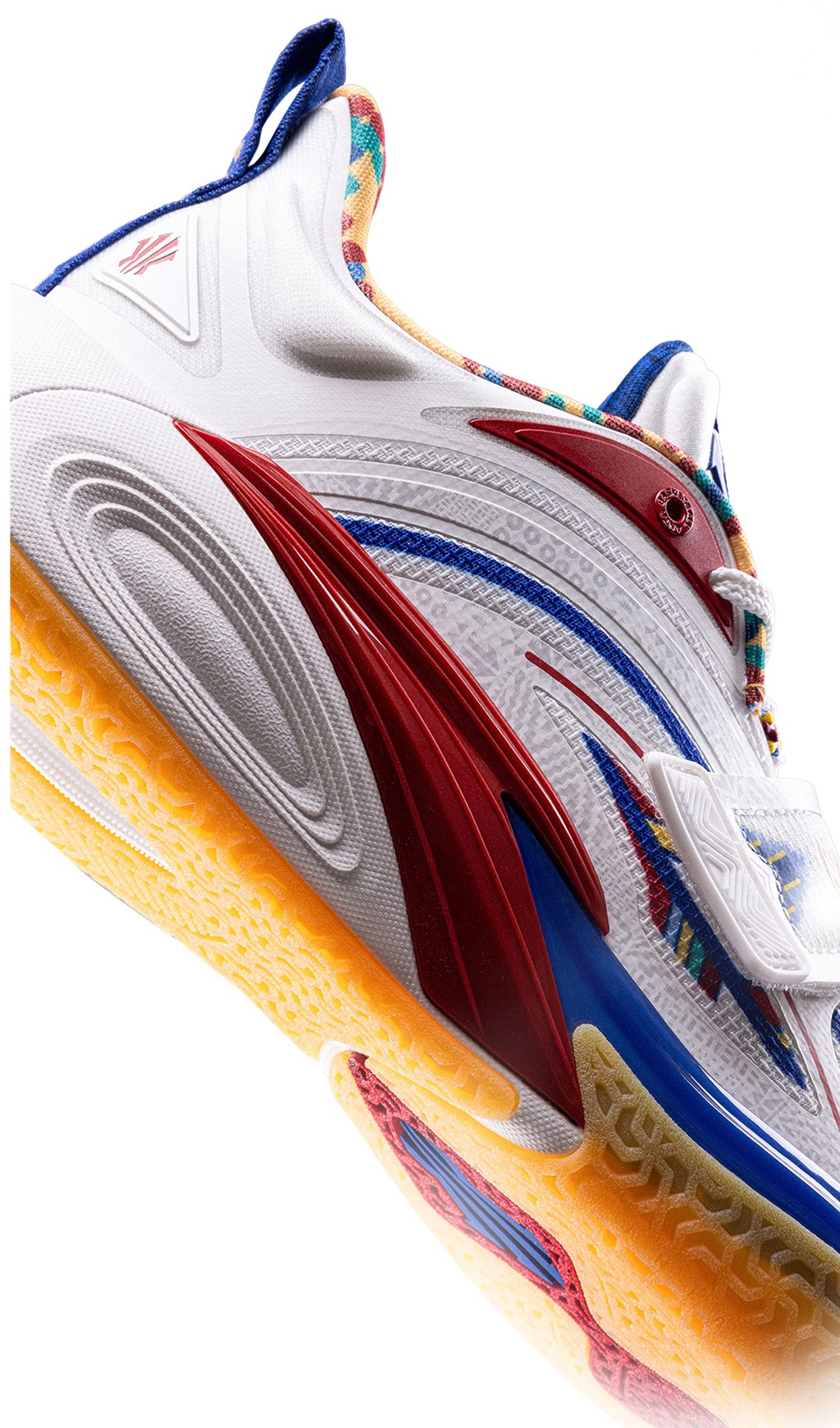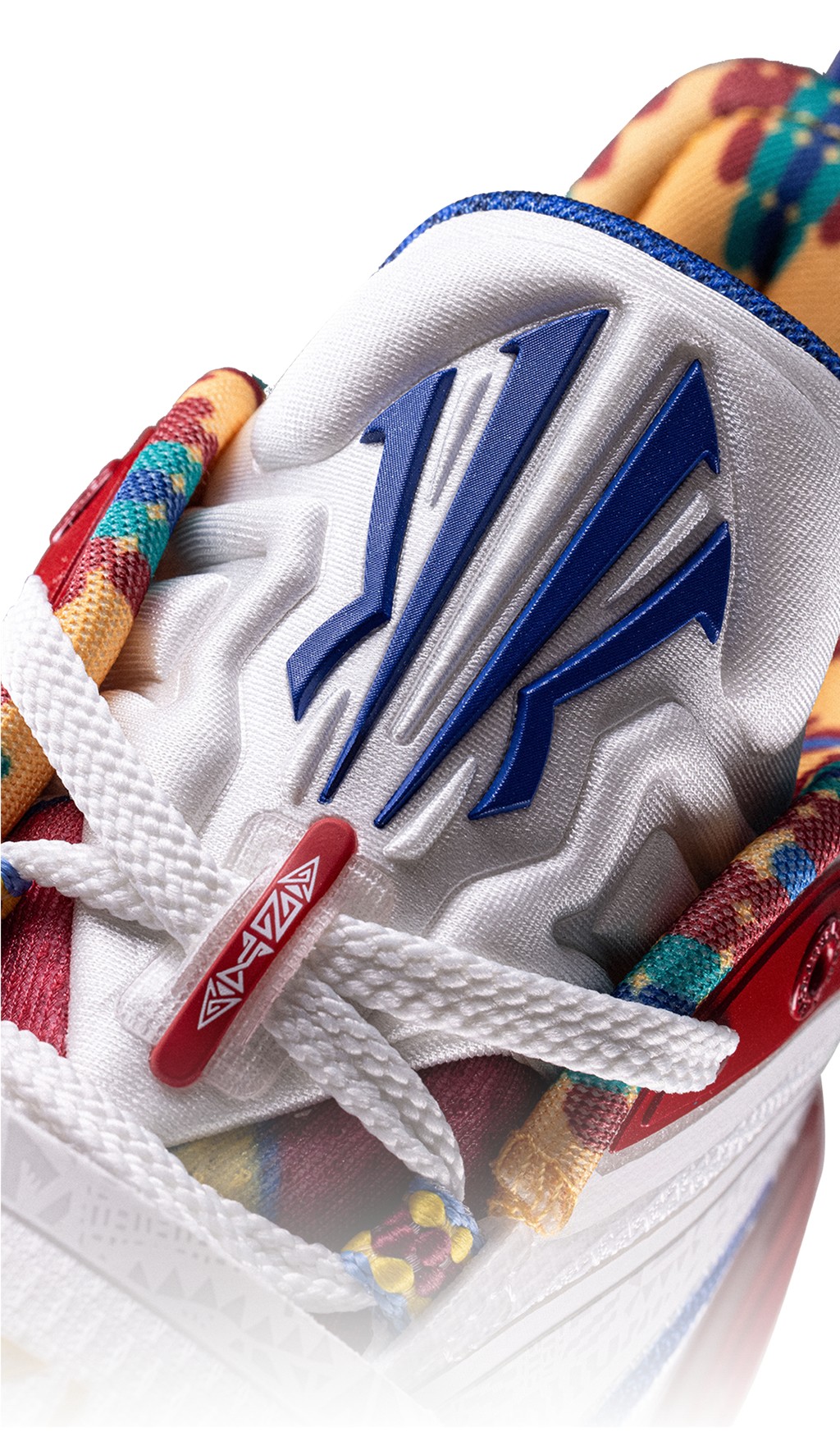 整双鞋的配色灵感,源自欧文为了替母亲追本溯源,皈依立苏岩族部落时穿着的传统服饰。